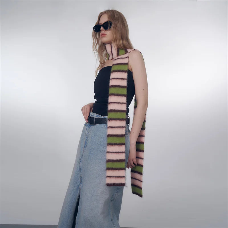 Designer brand Warm Shawl Women Scarf Luxury Cashmere Winter Wraps Casual Striped knit Scarves Travel Fashion small Scarf