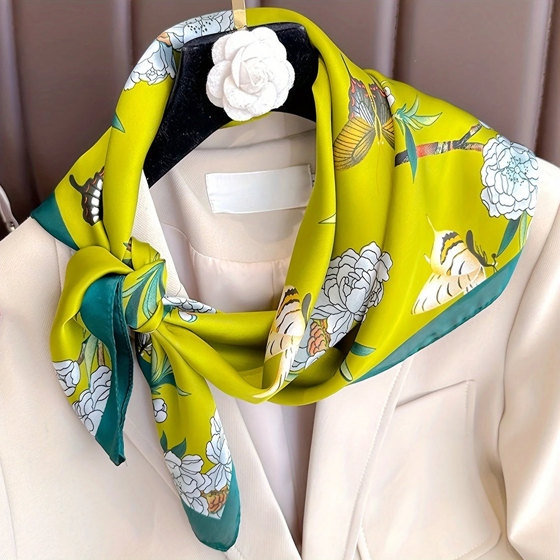 Elegant Floral Imitation Print Silk Scarf Square Scarf Fashion Bandanna Versatile Shawl For Stylish Sunscreen Neck Wrap Scarves
