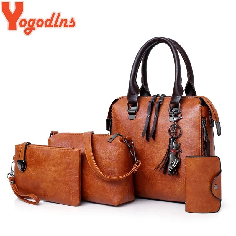 Yogodlns Fashion handbag luxury solid color female vintage designer handbags card four-piece shoulder bag Messenger bag wallet