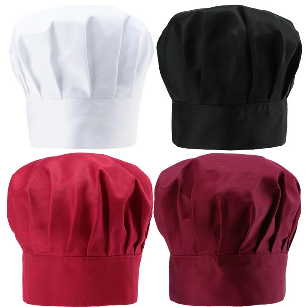 1PC Chef Hat Baker Kitchen Cook Restaurants Catering Elastic Cap Men Women Black Red Plain Cooker Hat