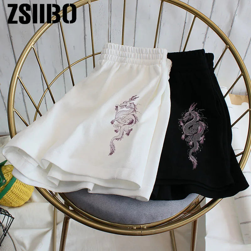 2021 Shorts female dragon print stretch cute girl sweet Harajuku colorful simple oversized trousers female Women's sport shorts