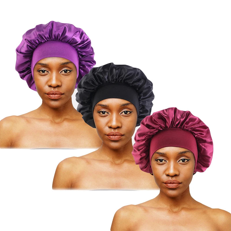 3PCS/LOT Unisex Elastic Band Cap For Brimmed Night Hat Bath Cap Extra Large Satin Silky Bonnet Sleep Hat For Curly Springy