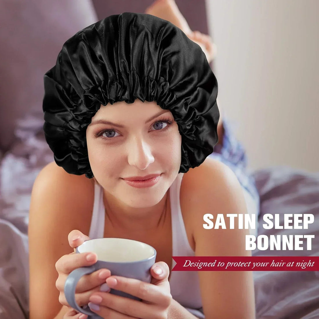 New Large Satin Bonnet Silky Night Sleeping Cap Satin Bonnet With Head Tie Band Bonnet Lace Up Shower Cap Curly Braid Hair