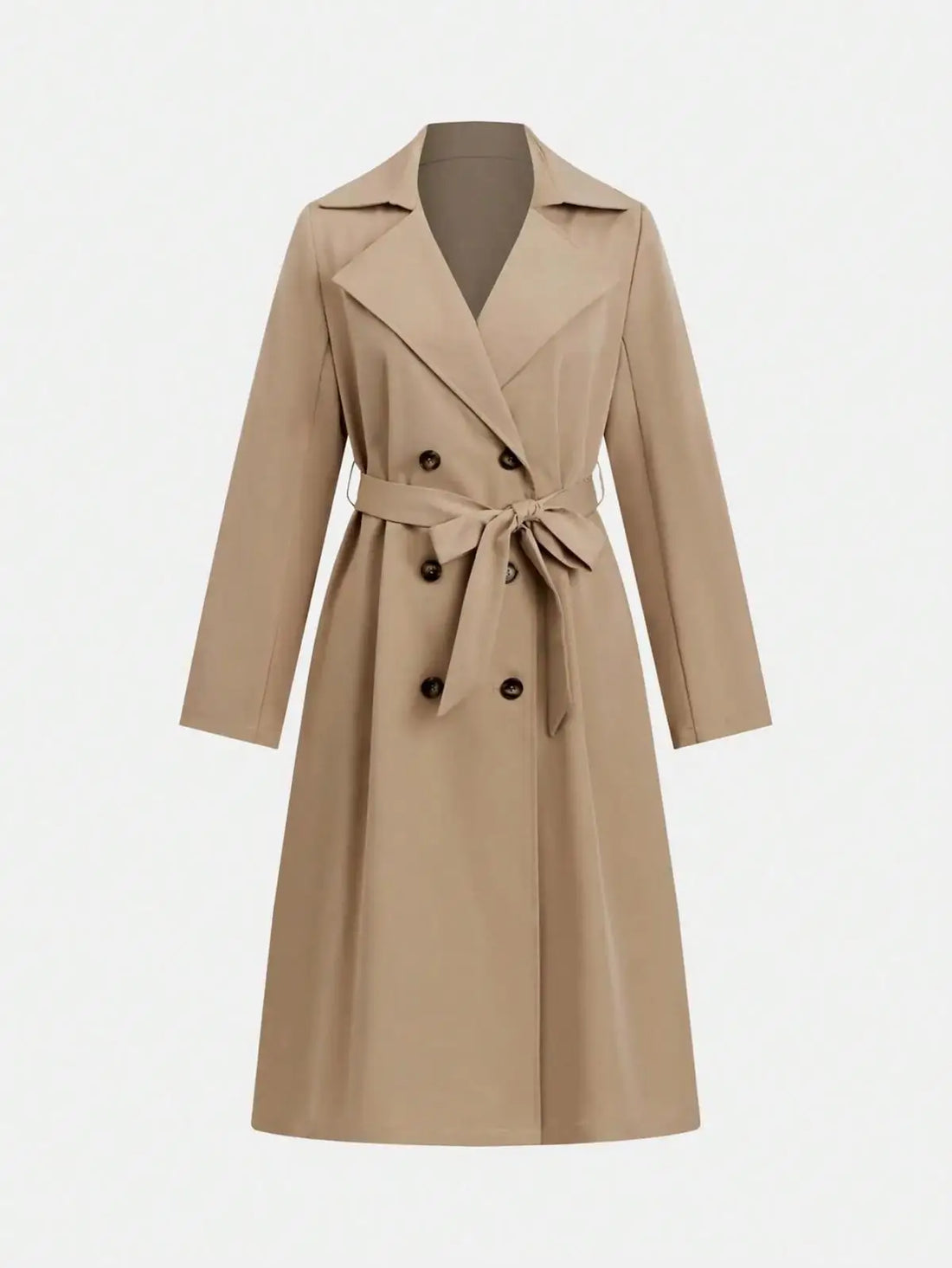 Willshela Women Fashion With Belt Solid Double Breasted Trench Vintage Lapel Neck Long Sleeves Female Chic Lady Outfits