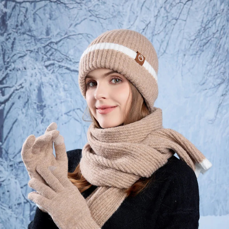 Women Winter Hat Scarf Gloves Set Fashionable Ear Protection Coldproof Warm Knitted Hat for Men Outdoor Ski Beanies
