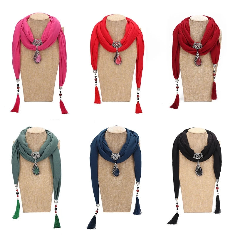 New 200x40cm Women Vintage Solid Color Ethnic Scarf Water Drop Bead P