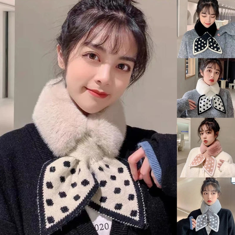 Scarf Collar For Women Scarf Women Winter Fashion Soft Faxr Rabbit Fur Collar Print Bow Tie Scarf Women Accessories