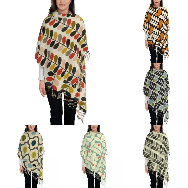 Orla Kiely Multi Stem Tassel Scarf Women Soft Flowers Floral Abstract Shawl Wrap Ladies Winter Fall Scarves