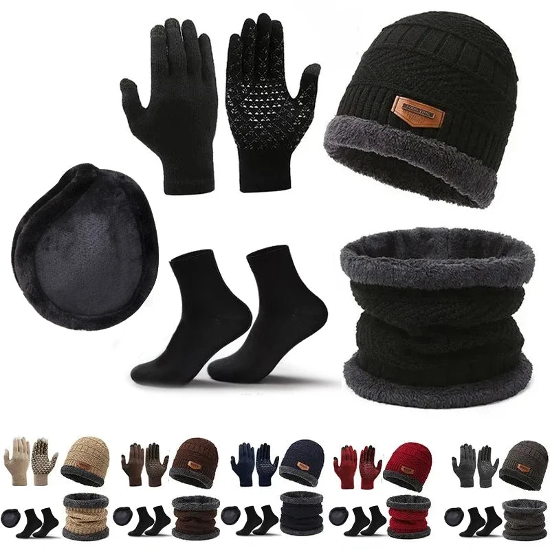 Suit Hat Men's Winter Scarf, Gloves, Socks, Five-Piece Scarf, Neck Scarf, Warm Winter Sky Knit Hat
