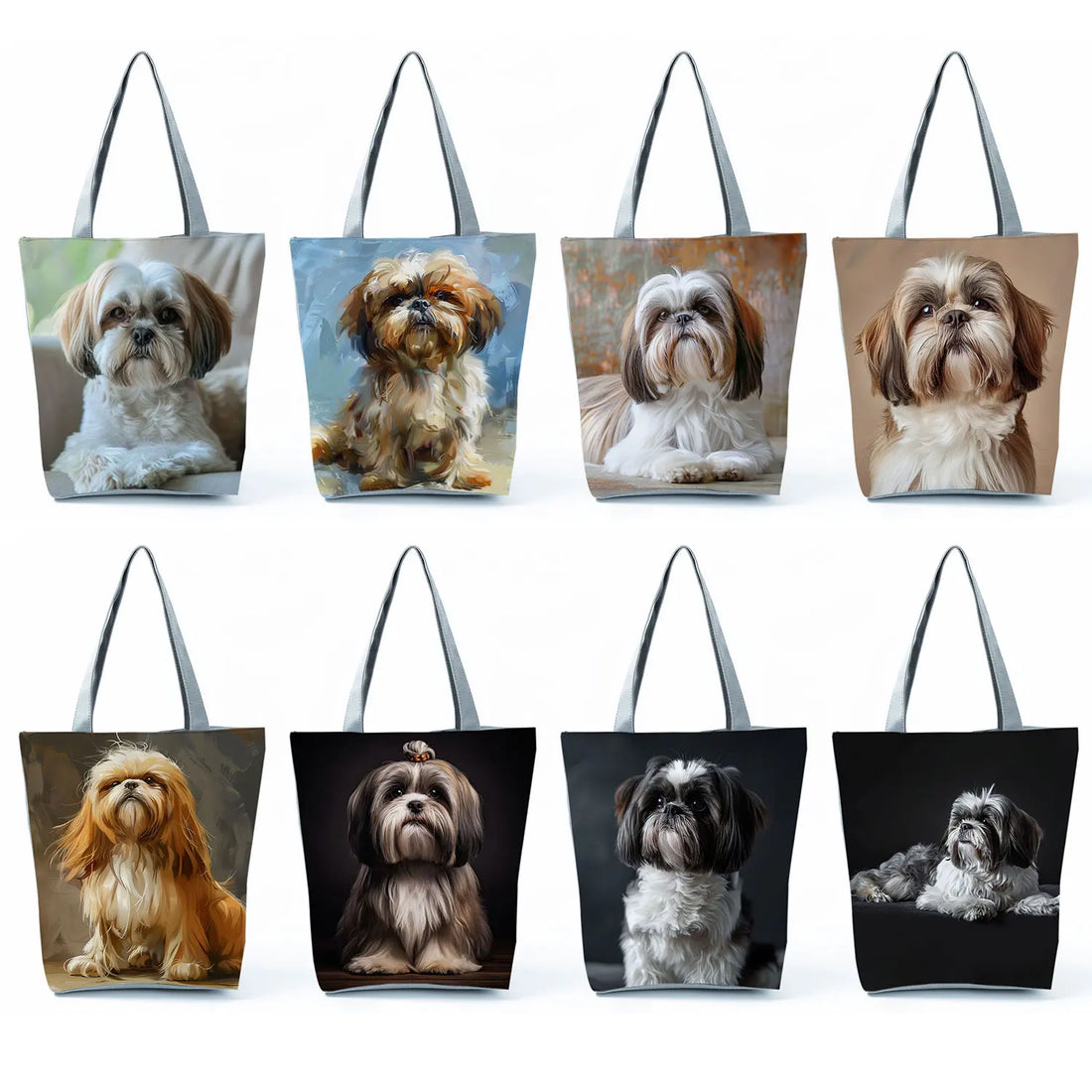Cute Shih Tzu Print Shopping Bags Groceries Women Handbags Portable Kawaii Animal Dog The Tote Bag Large Capacity Shoulder Bags
