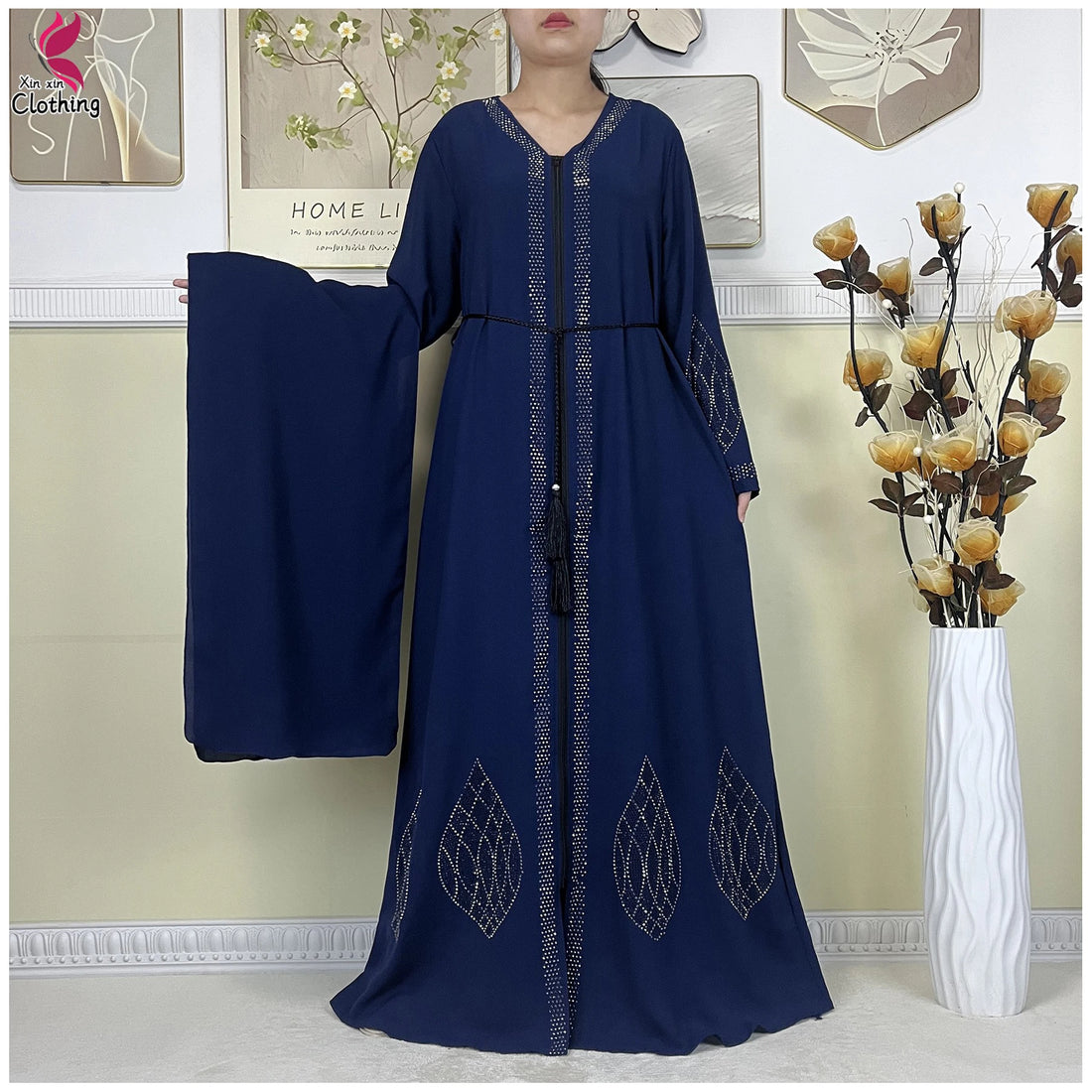 2025 New Dubai Muslim Elegant Party Dress Open Zipper Abaya Islam Women Clothing Long sleeves Loose Chiffon Fabric African Dress