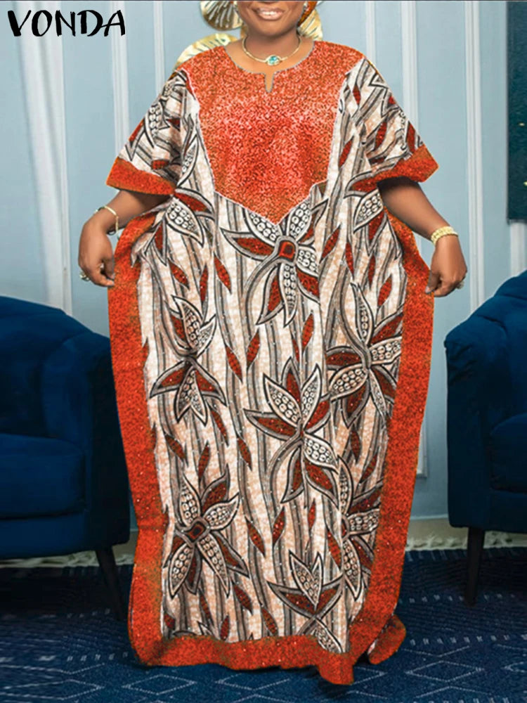 Plus Size Dresses 2025 Woman Summer Sundress Printing Bohemian Vestidos Vintage V Neck Bat-wing Sleeve Robe Oversized