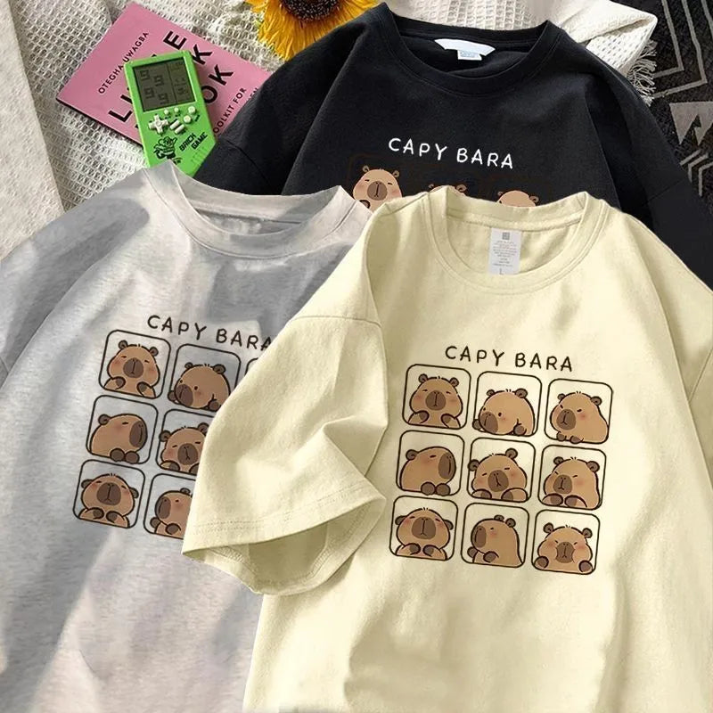 Loose Cute Cartoon Summer Short Sleeved T-shirt for Women's Casual Versatile Round Neck Men's Top