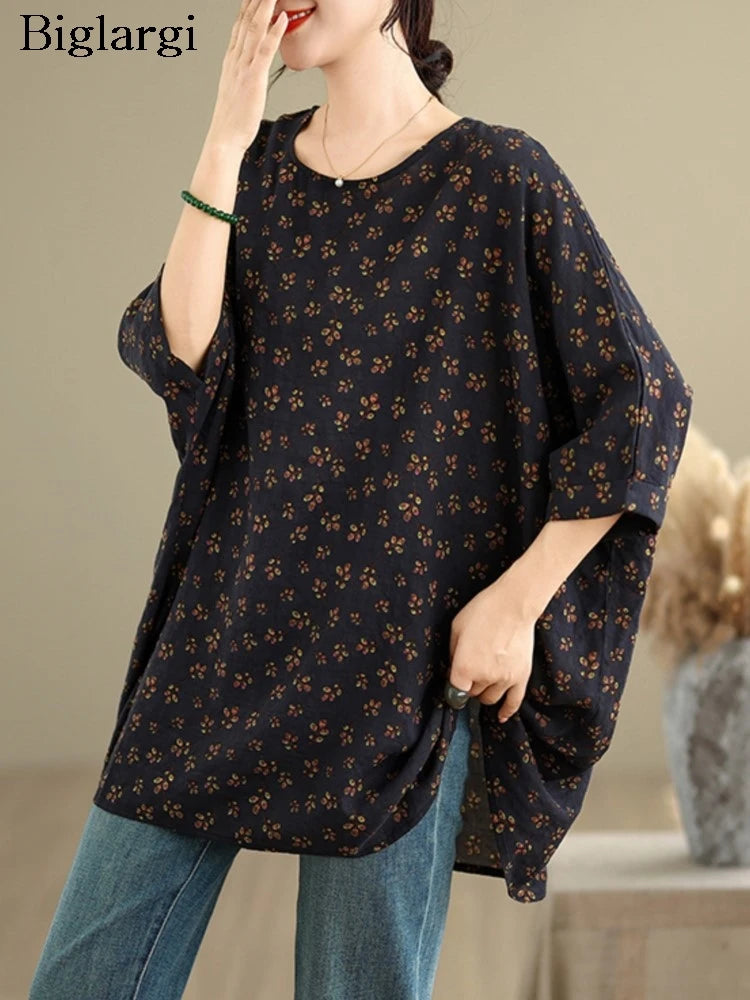 Oversized Summer T-Shirts Women Floral Print Vintage Fashion Loose Ladies Blouses Half Sleeve Casual Woman T-Shirts