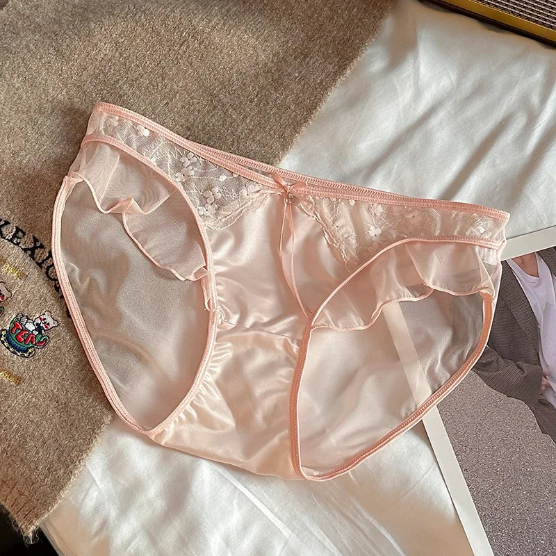 Women Ruffle Edge Sexy Lace Mesh Satin Transparent Underwear Thin Breathable High Elasticity Low Waist Seamless Panties Breifs