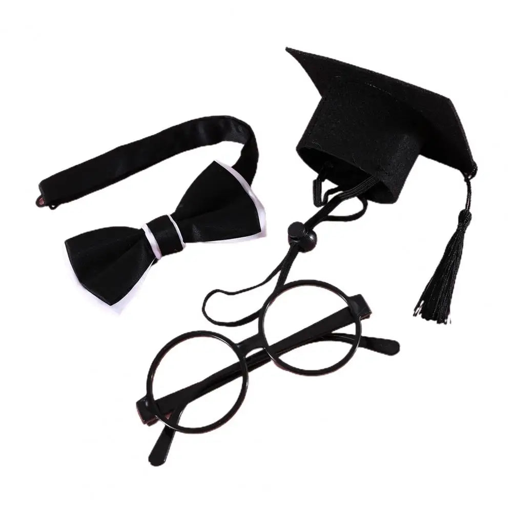 1 Set Pet Graduation Suit Adorable Adjustable with Tassel Felt Pet Cats Dogs Cosplay Hat Collar Glasses Set Pet Accessories