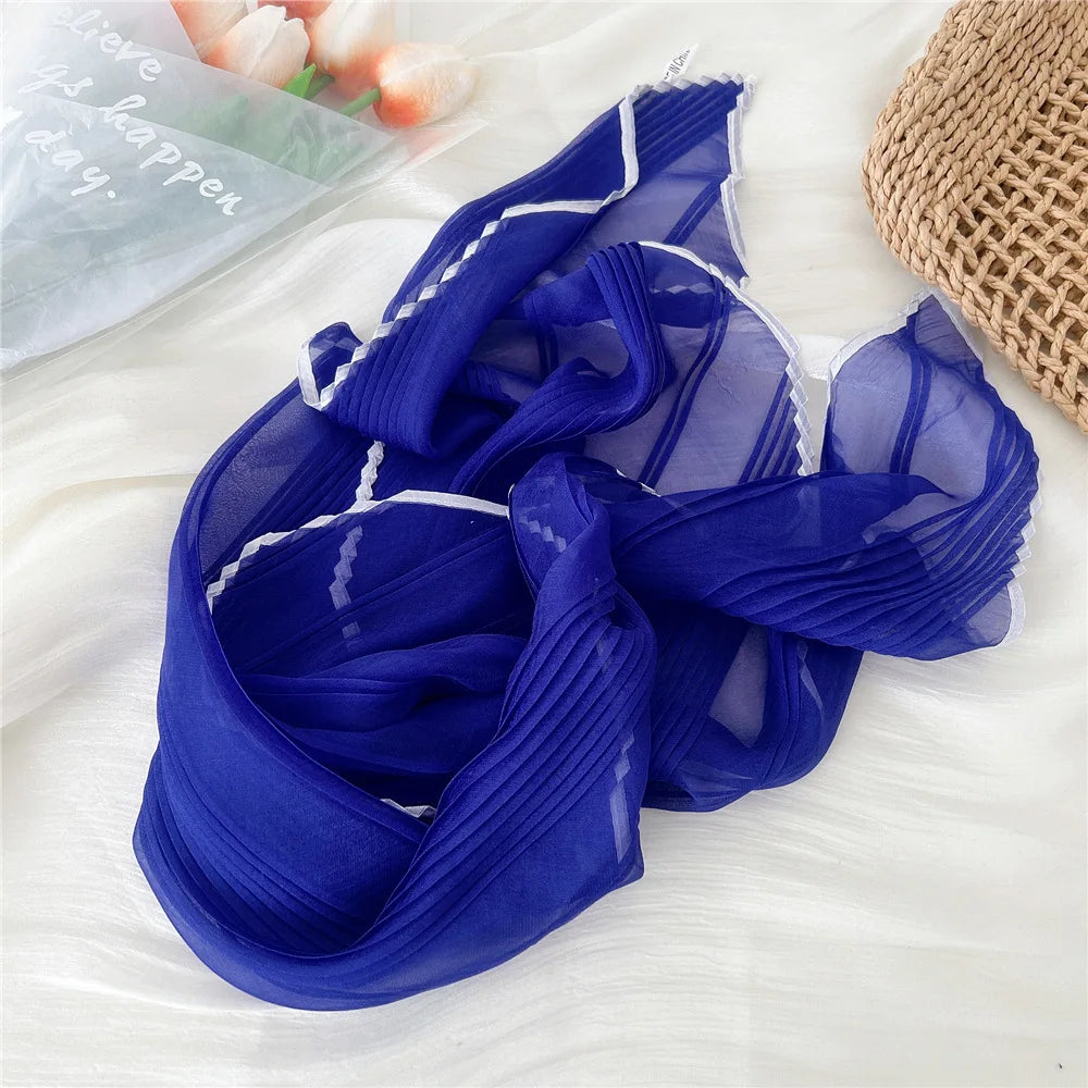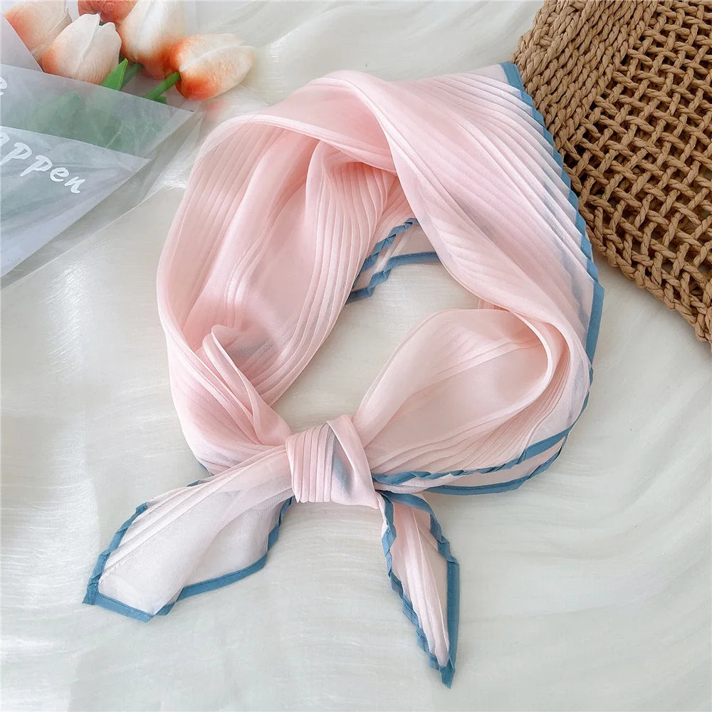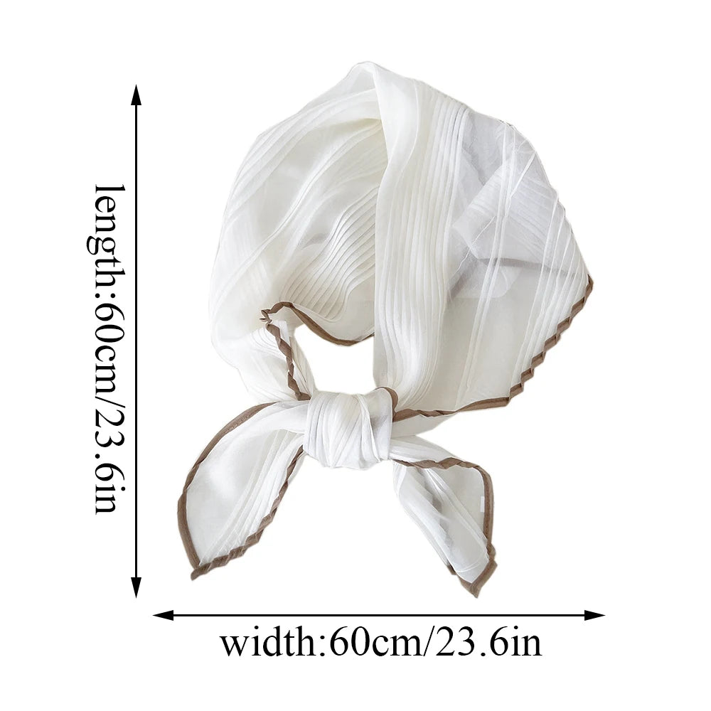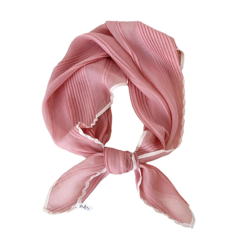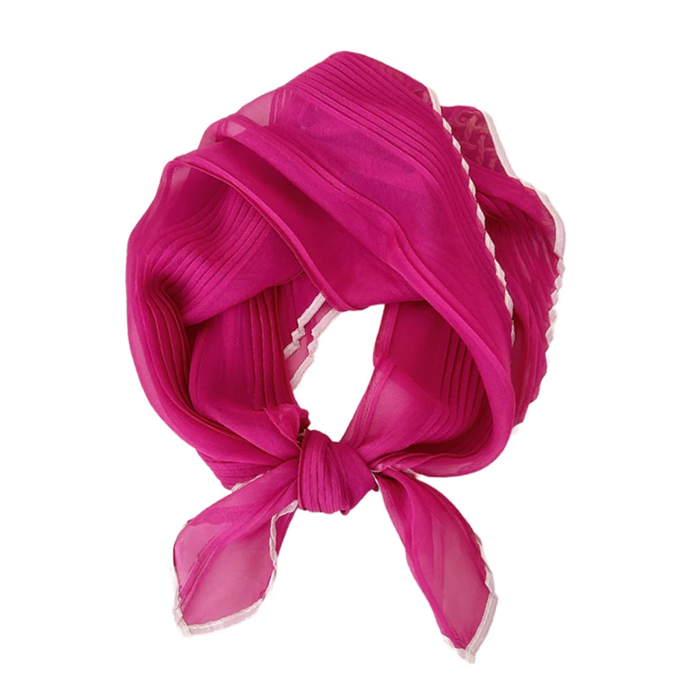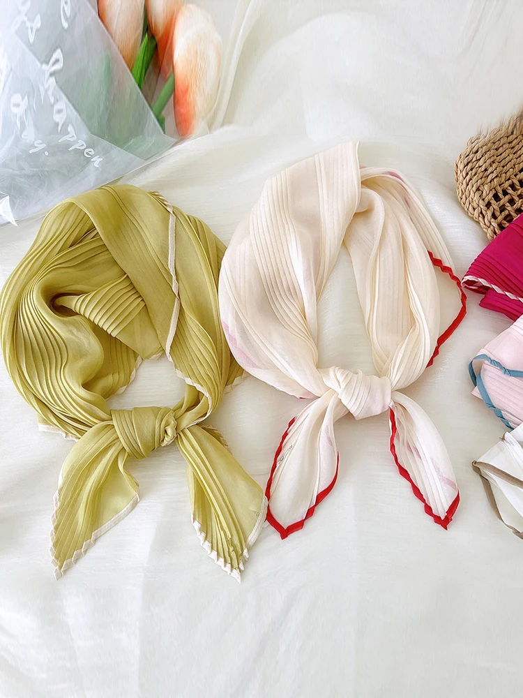 1PC 60cm Small Pleated Silk Scarf Fairy Solid Color Small Neckwear Bandana Rhombus Elegant Female Headband Summer Handkerchief