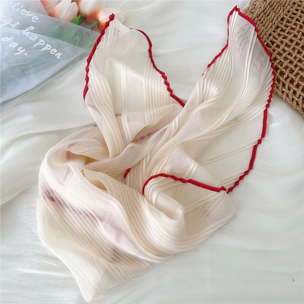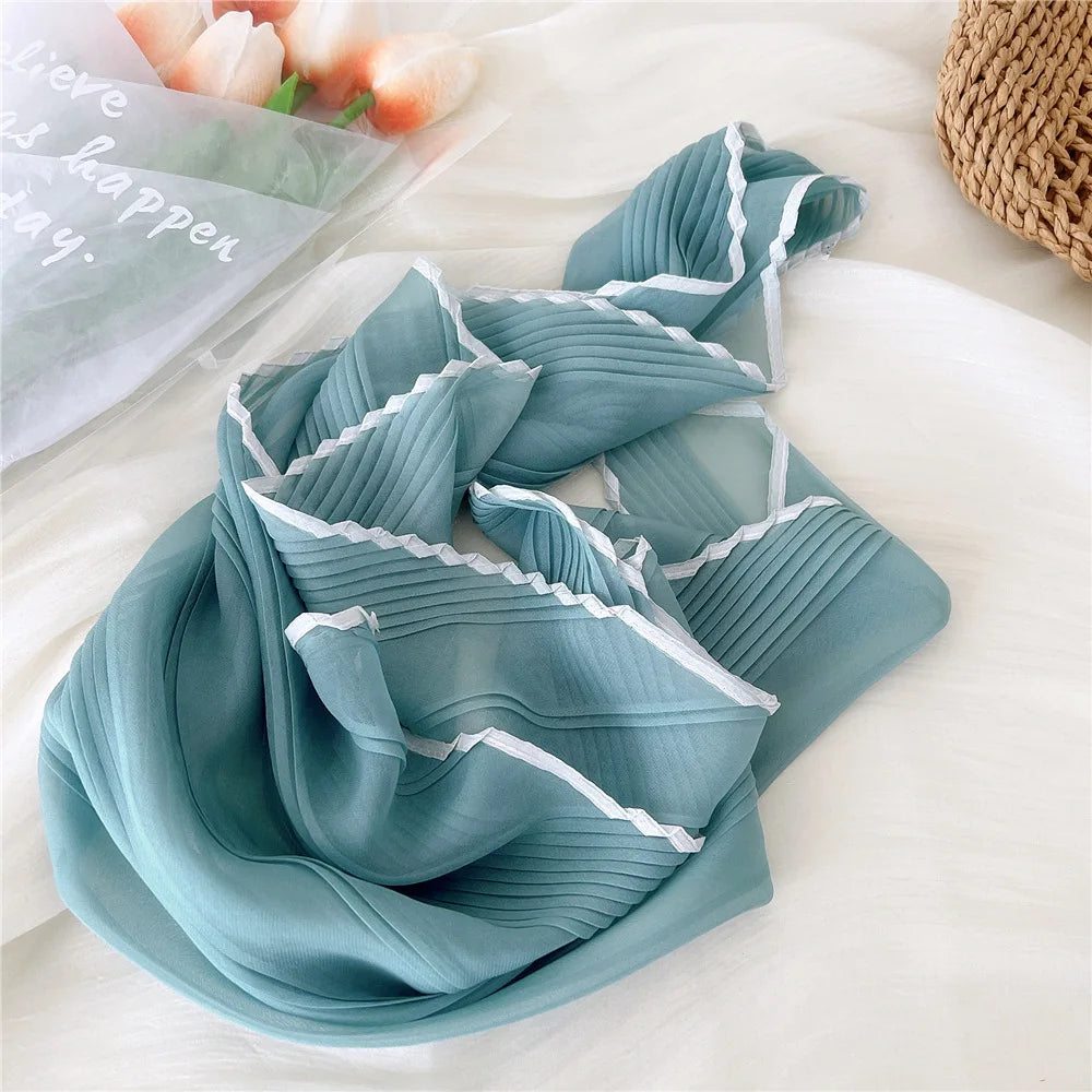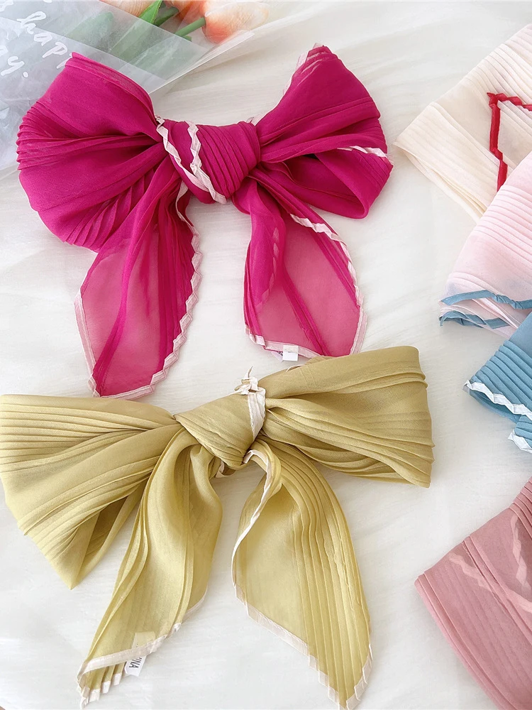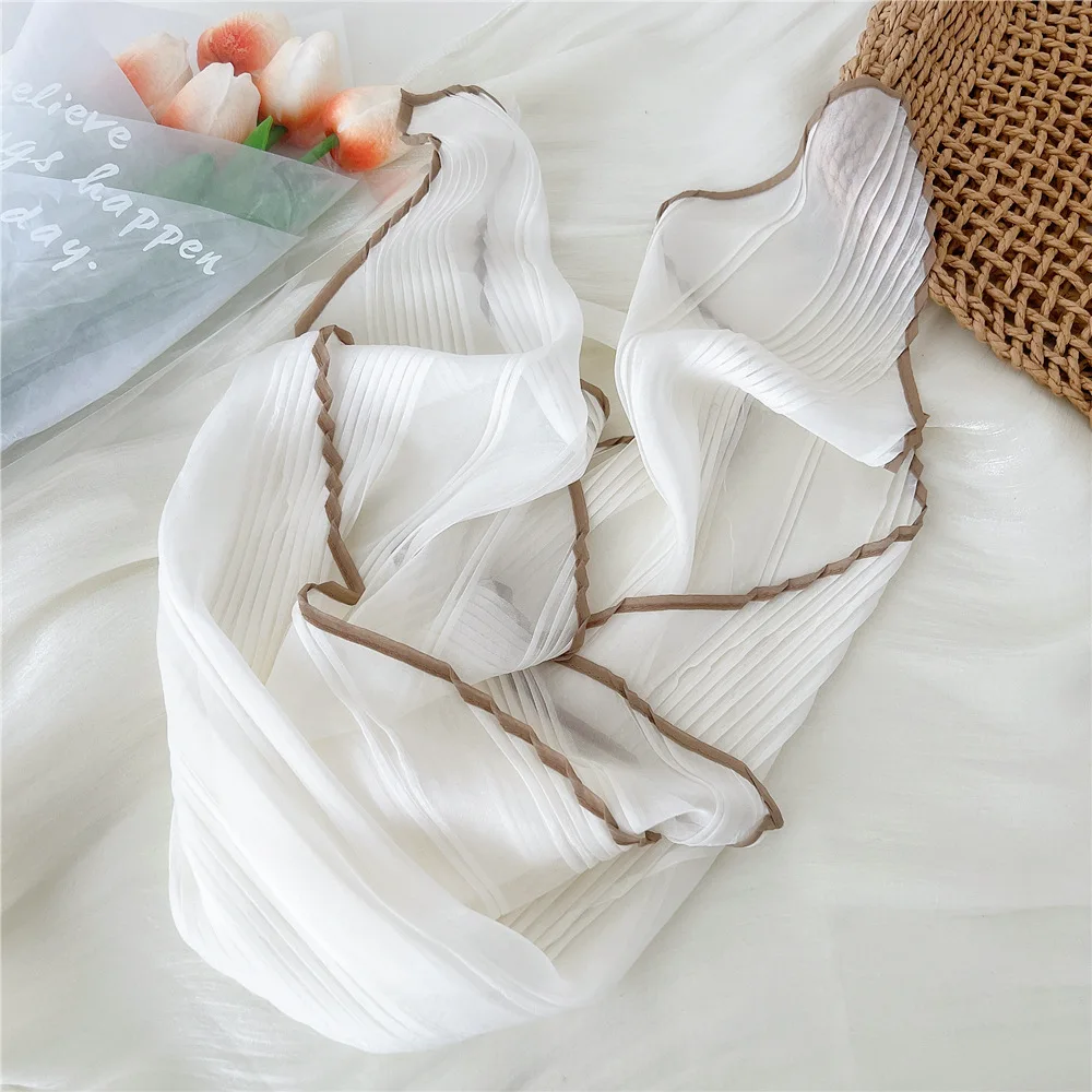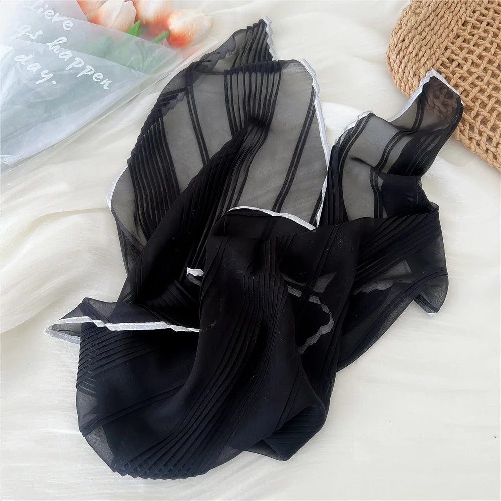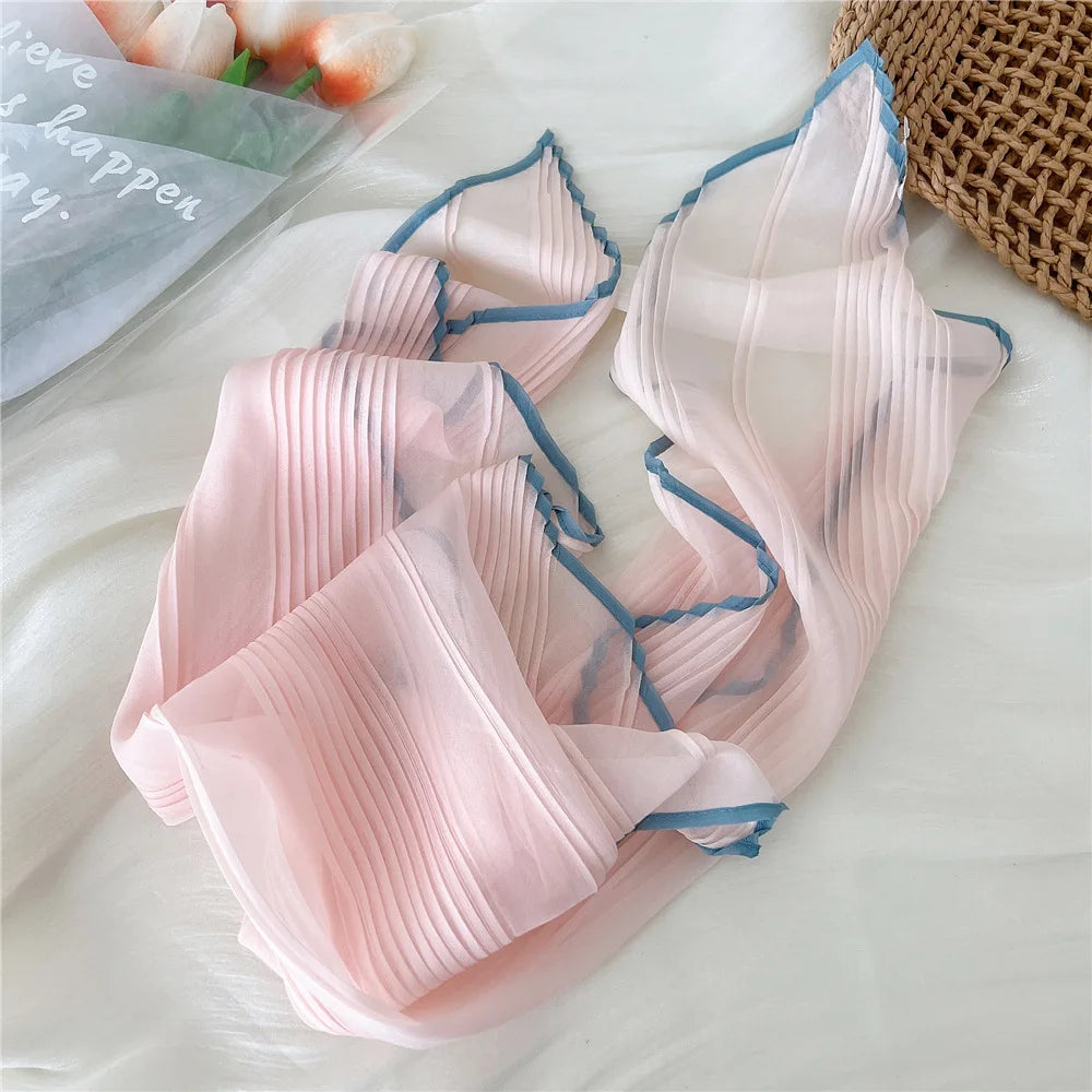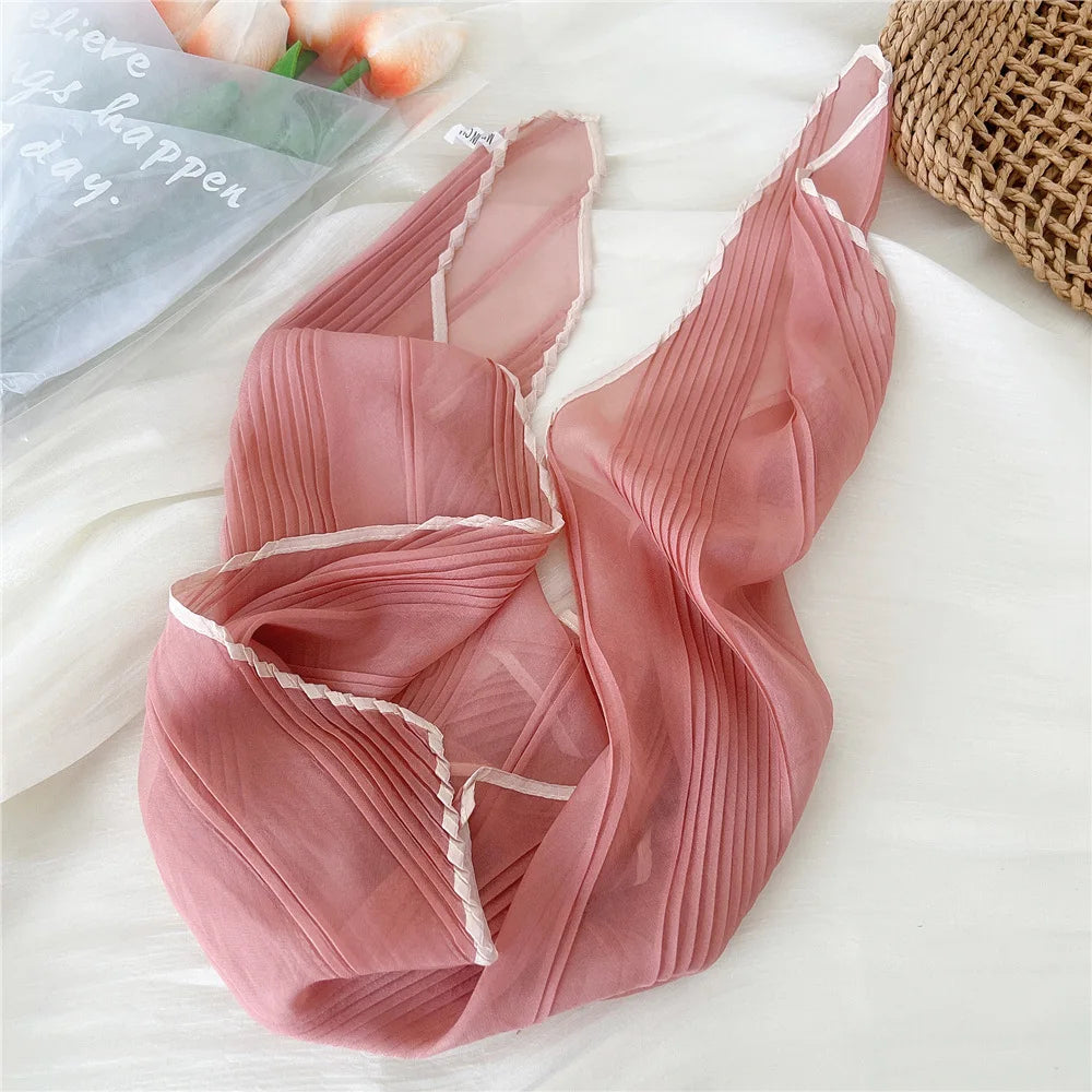 1PC 60cm Small Pleated Silk Scarf Fairy Solid Color Small Neckwear Bandana Rhombus Elegant Female Headband Summer Handkerchief