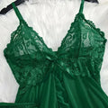 2 Pcs Set Lace Nightgown Women Exquisite Homewear New Green Nighttime Pajamas Transparent Split Nightdress V-Neck Bra Panty Sets