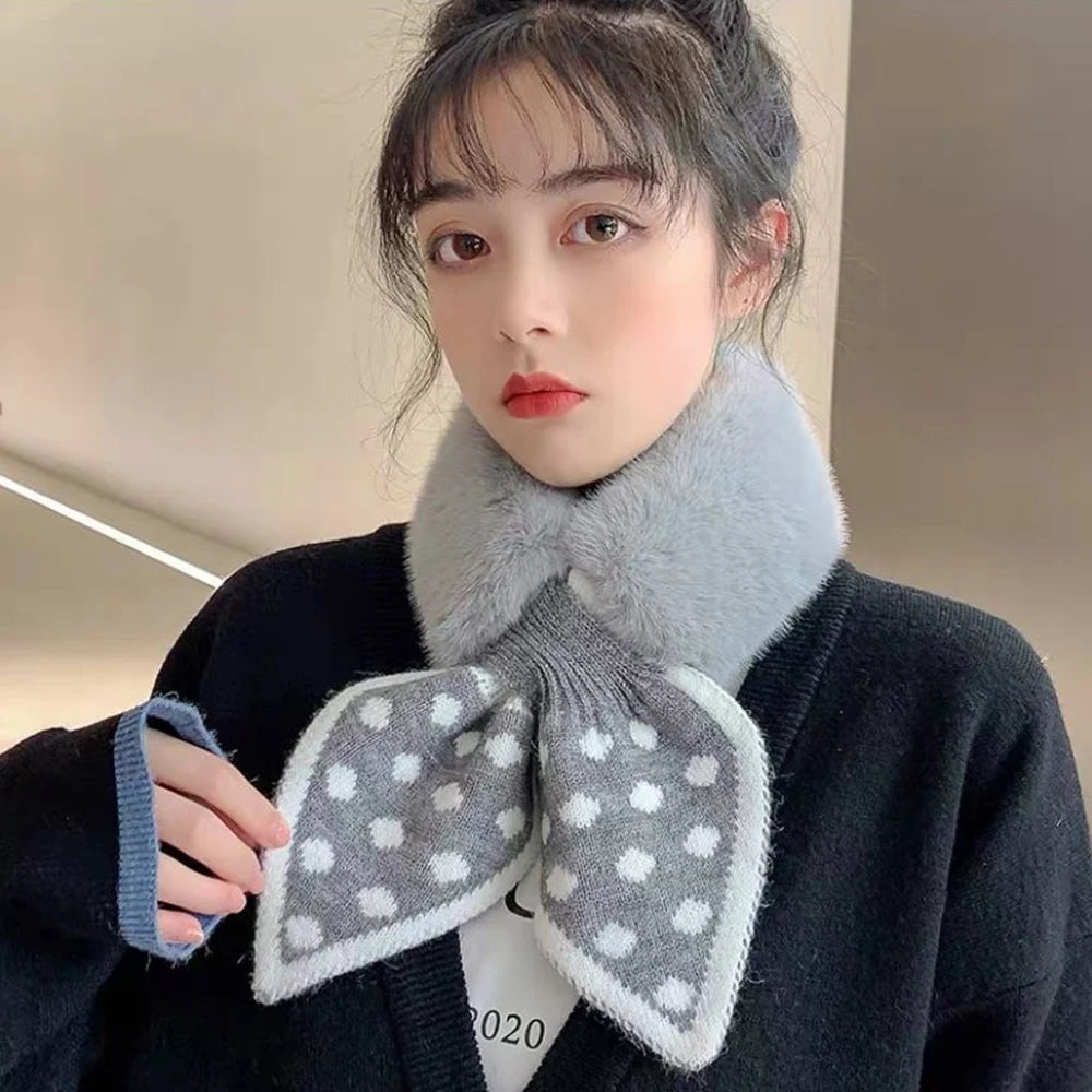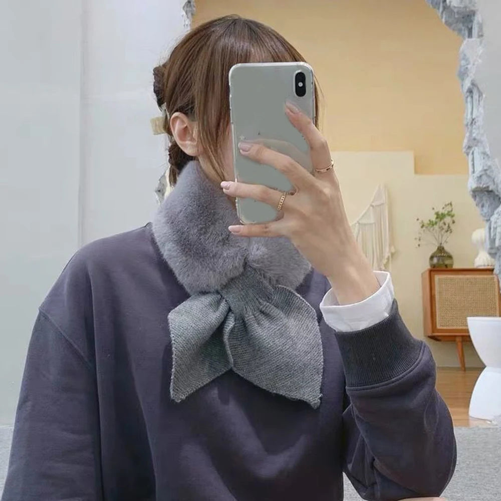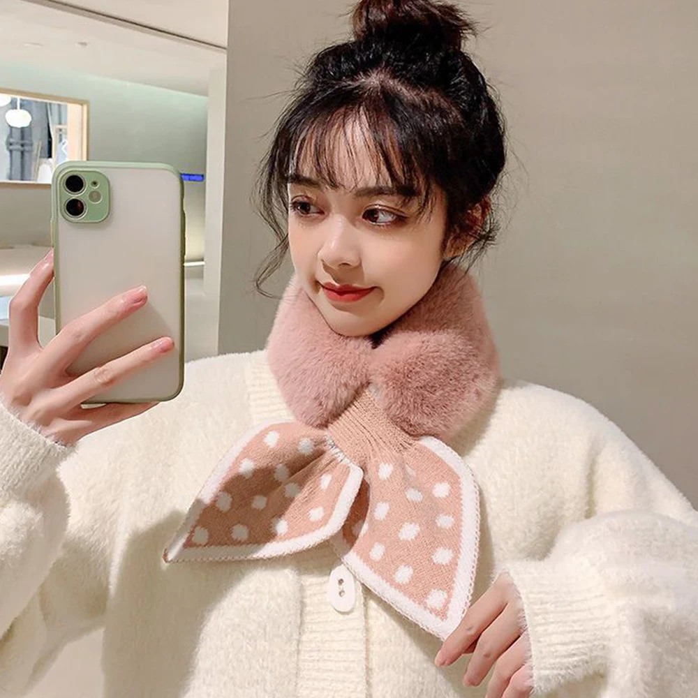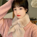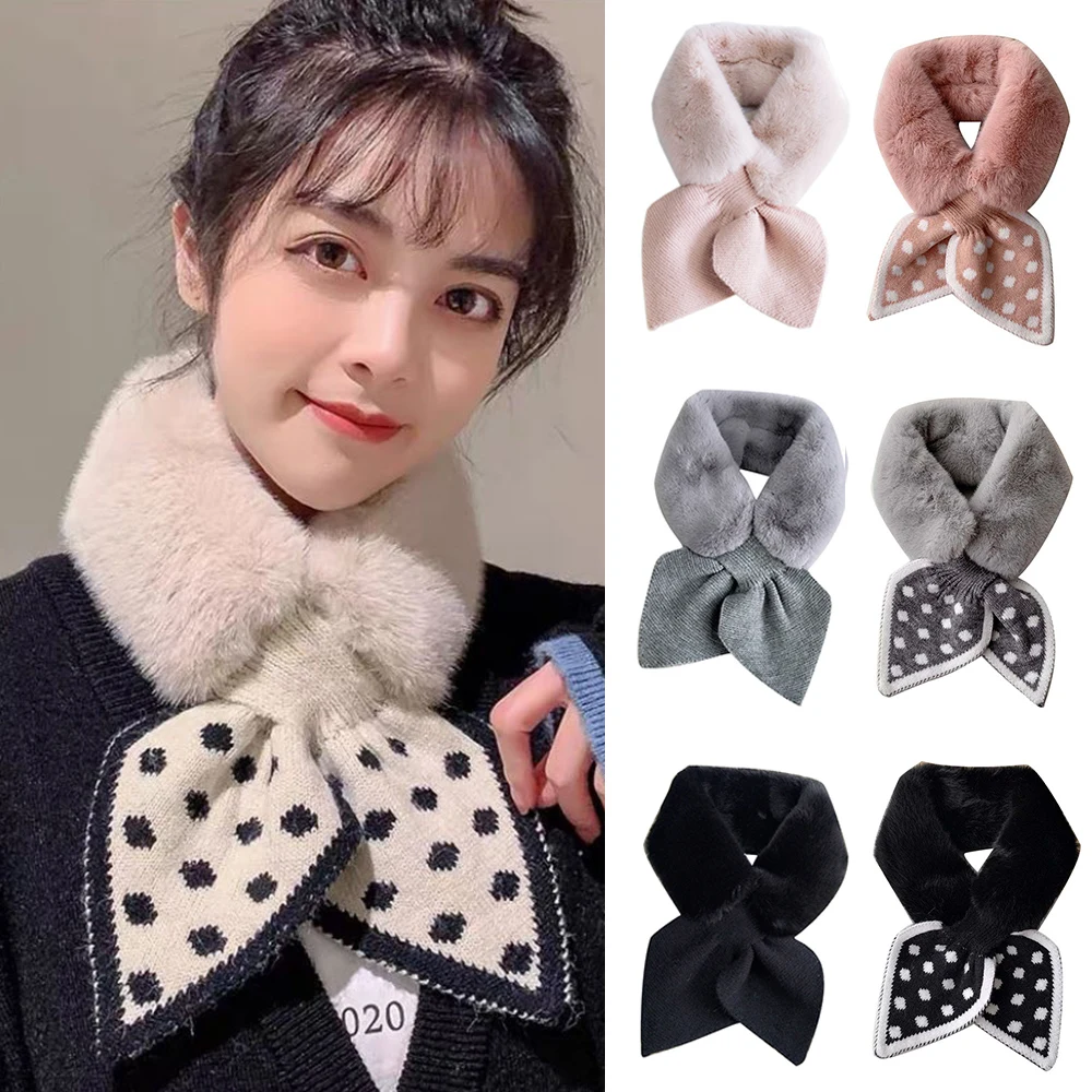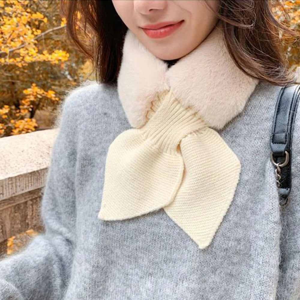 2023 Korean Winter Faux Rabbit Fur Scarf Women Soft Plush Women's Scarf Winter Knitted Neck Collar Neck Warmer Shawl Cross Scarf