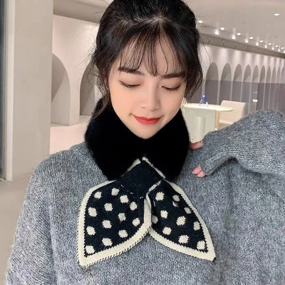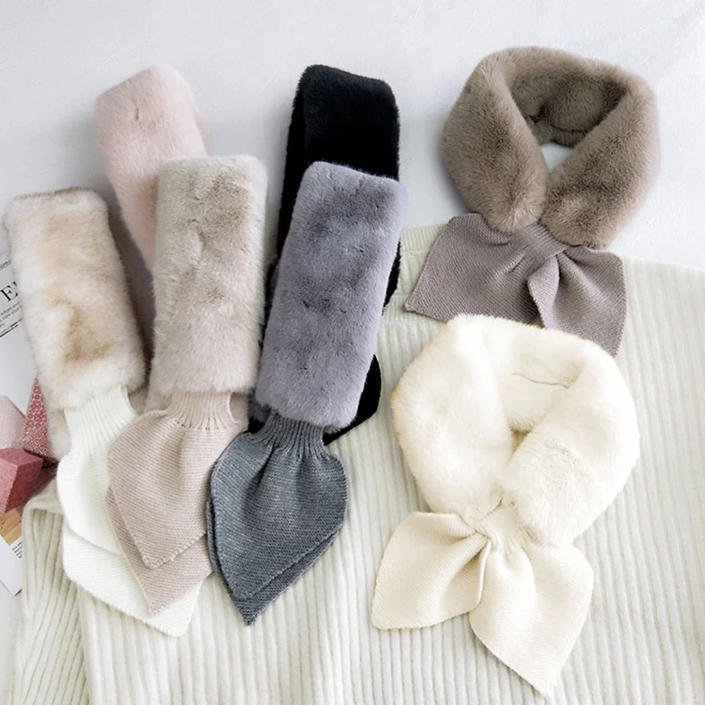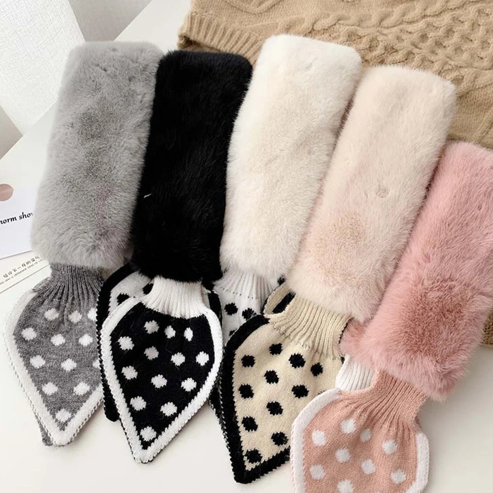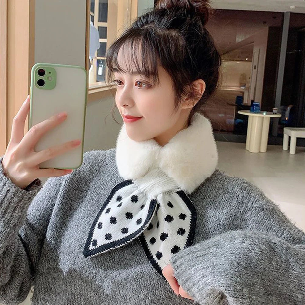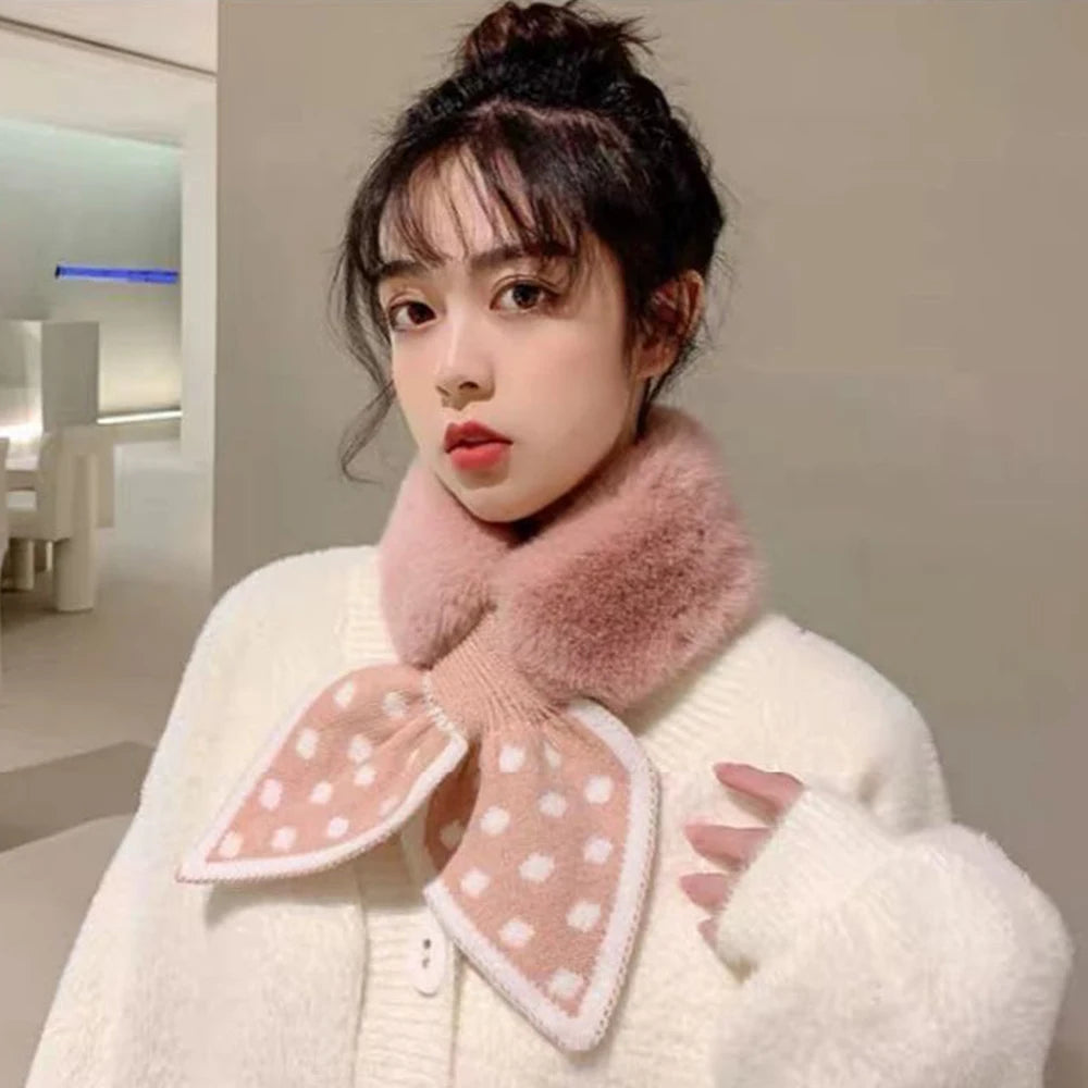2023 Korean Winter Faux Rabbit Fur Scarf Women Soft Plush Women's Scarf Winter Knitted Neck Collar Neck Warmer Shawl Cross Scarf