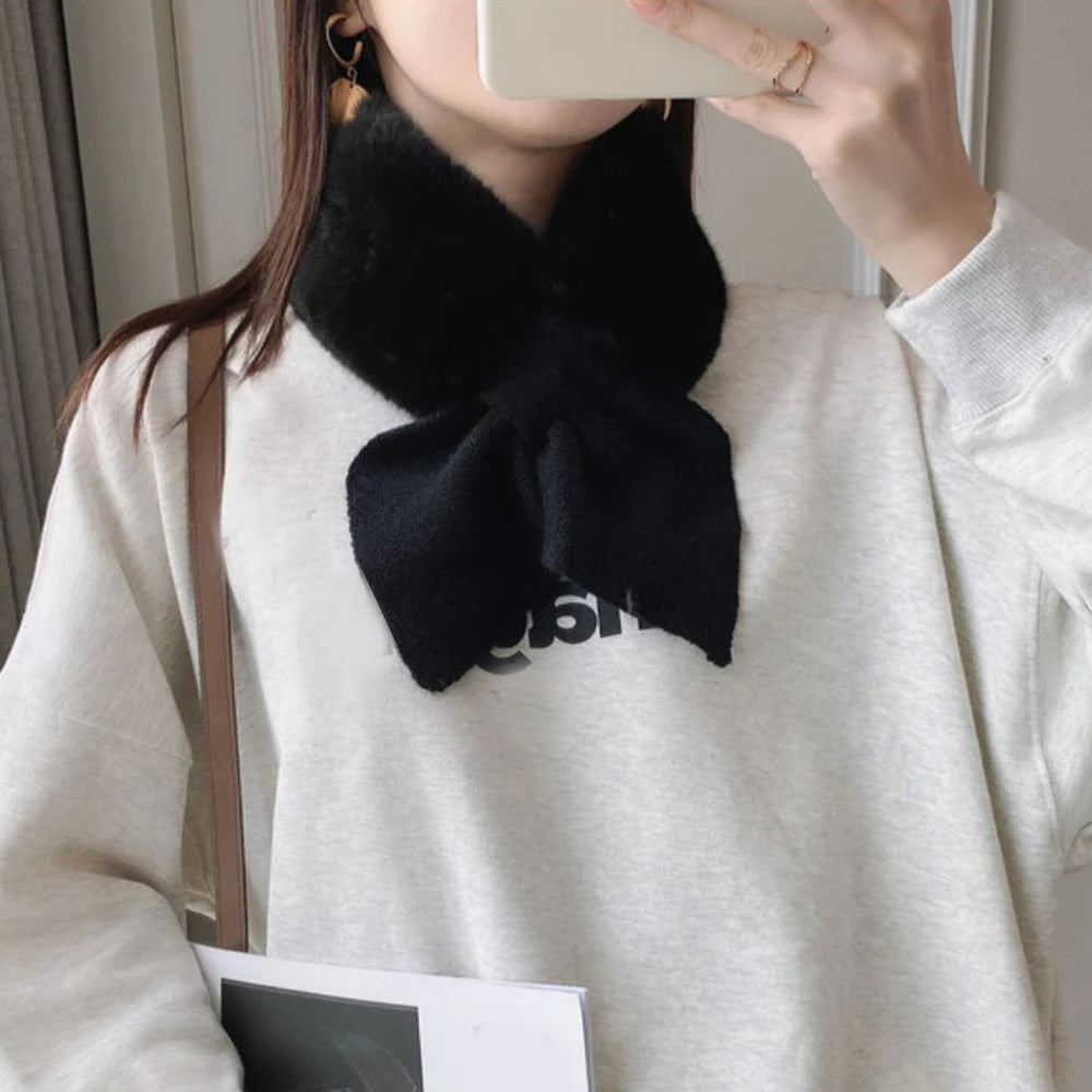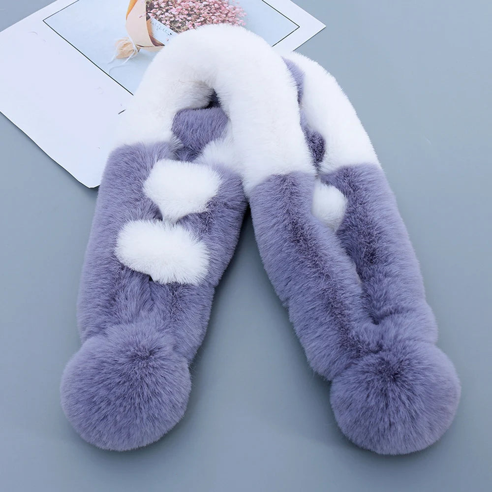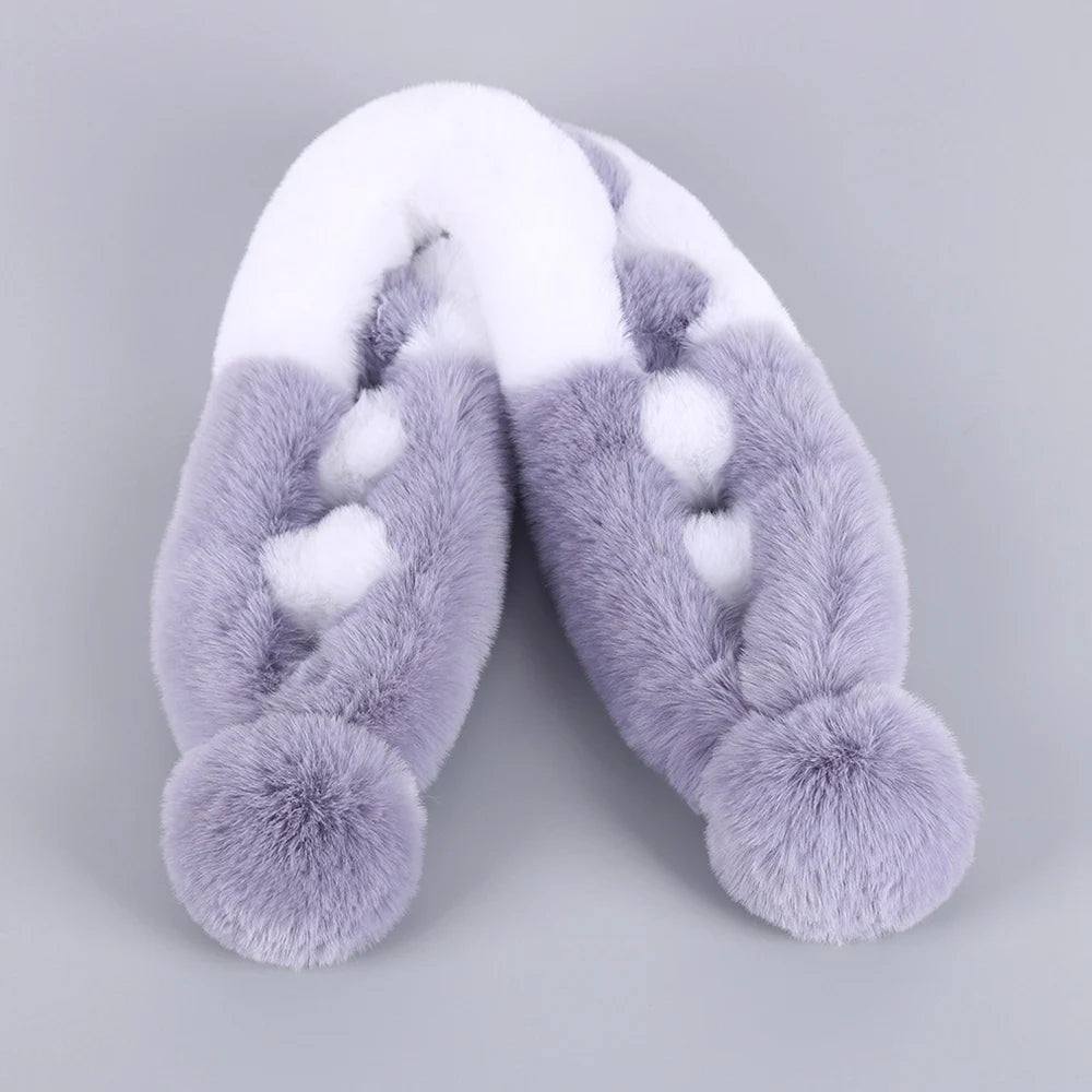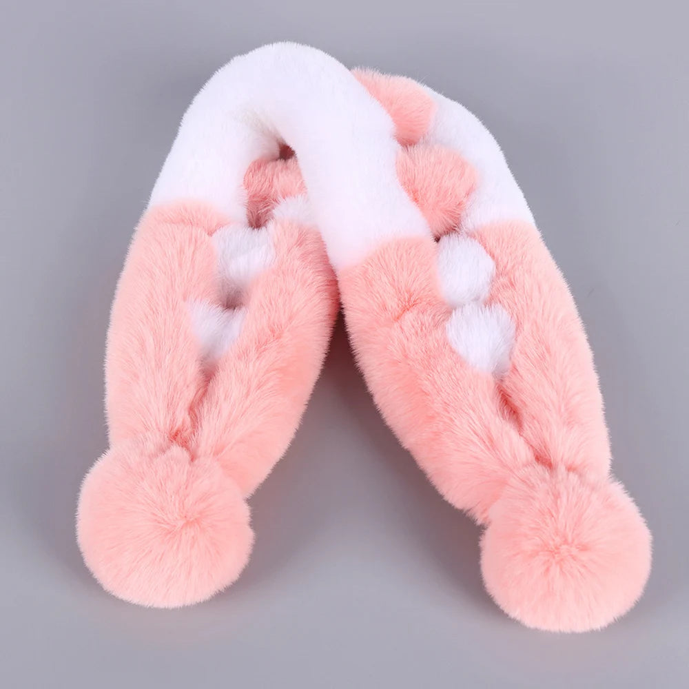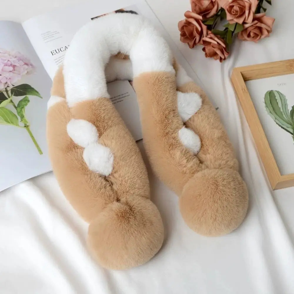 2023 Korean Winter Faux Rabbit Fur Scarf Women Soft Plush Women's Scarf Winter Knitted Neck Collar Neck Warmer Shawl Cross Scarf