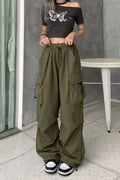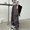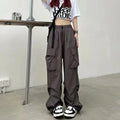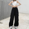 2024 Women Casual Joggers Tech Pants Solid Low Waist Pants Drawstring Wide Leg Baggy Trousers Y2k Streetwear Oversize Sweatpants