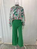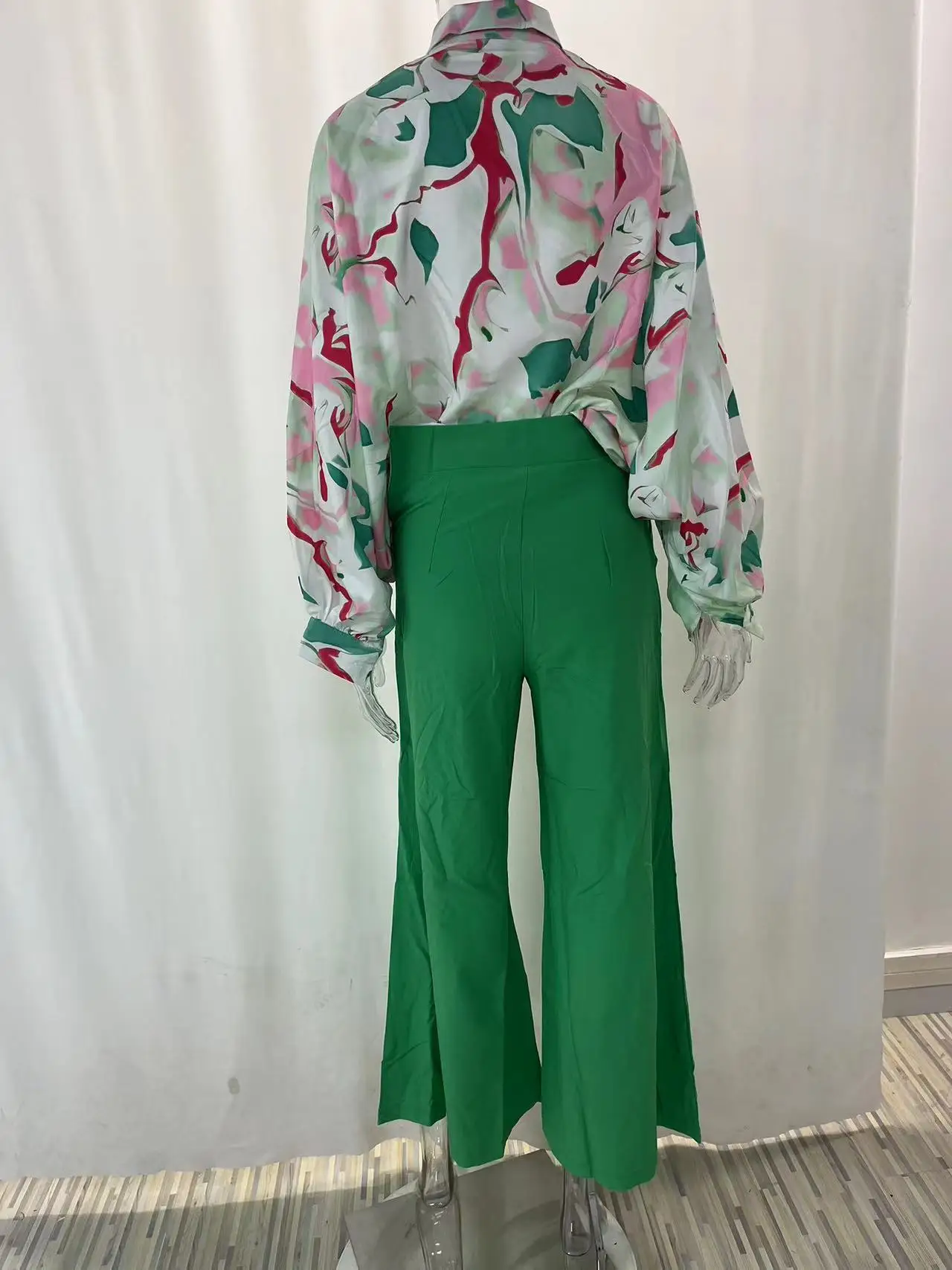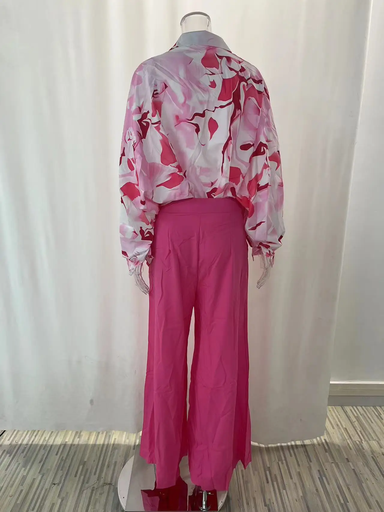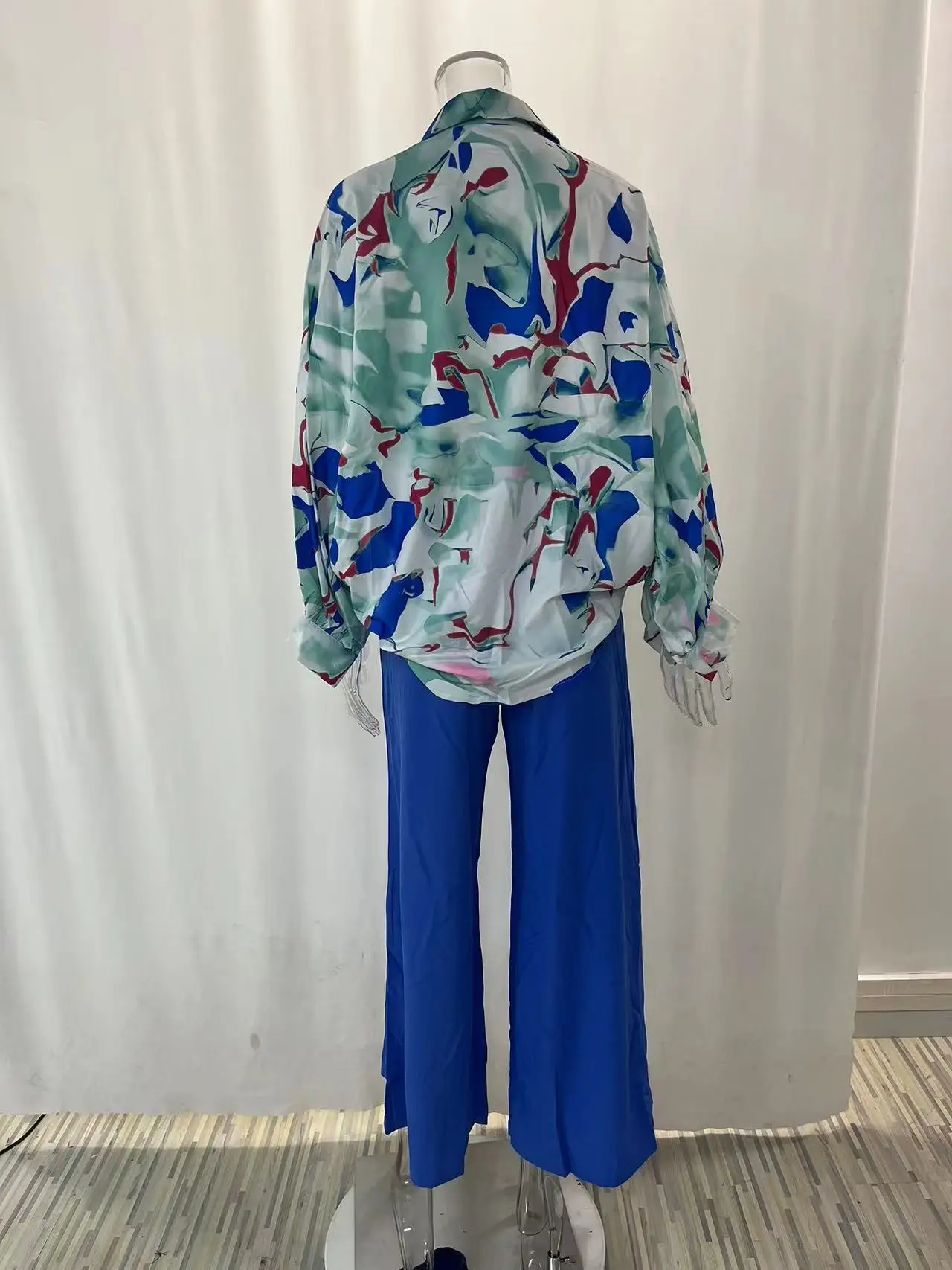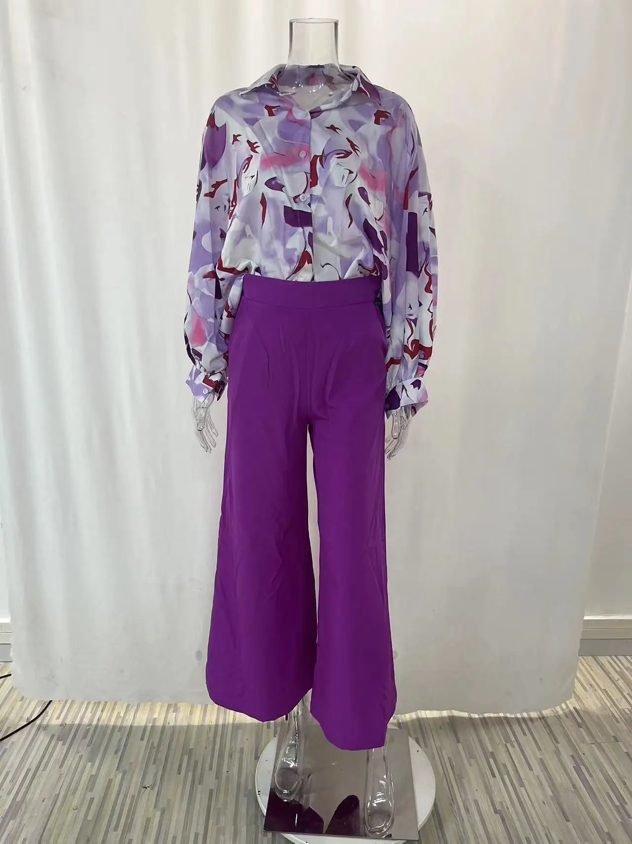 2024Autumn Plus Size Women's Set Long Sleeve Shirt Tops and Wide Leg Pants Elegant Tracksuit Two Piece Set Sweatsuit Outfits Y2K