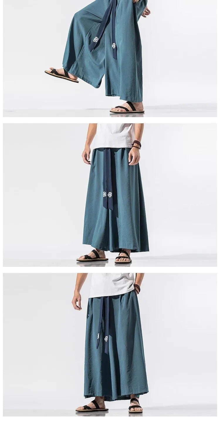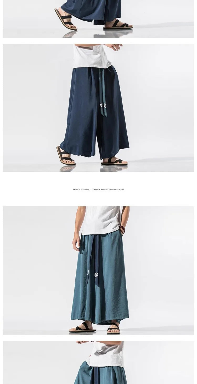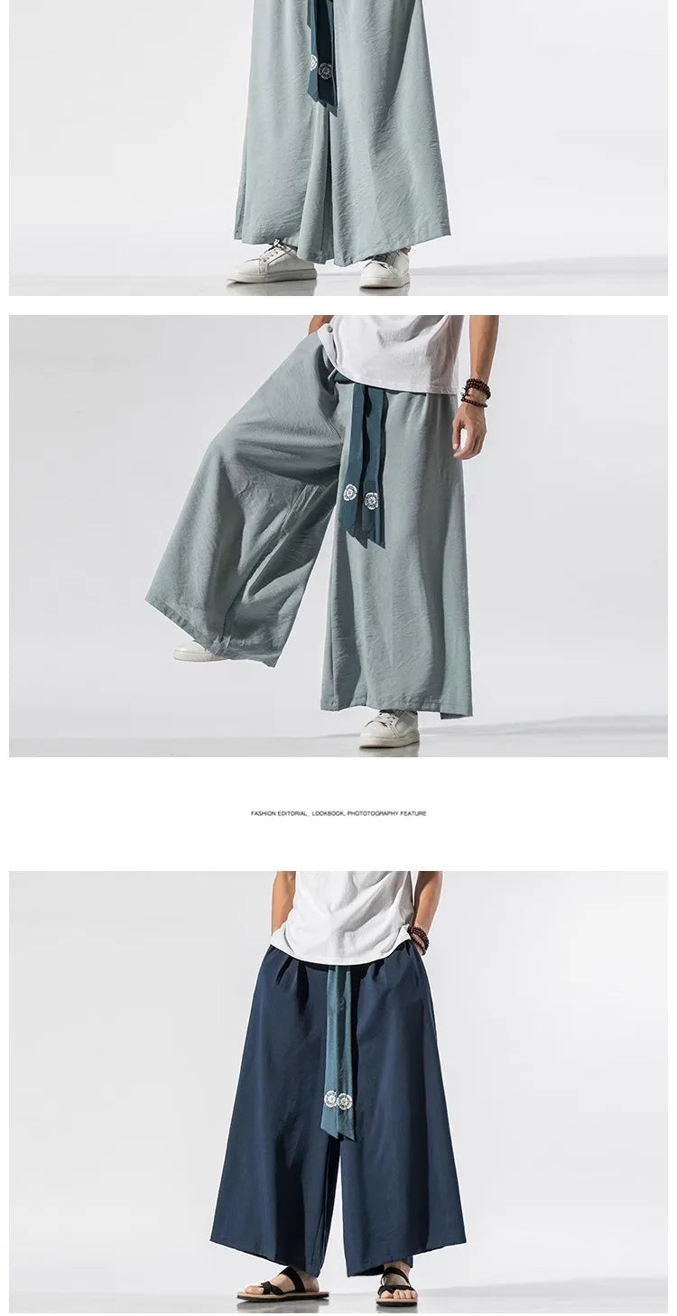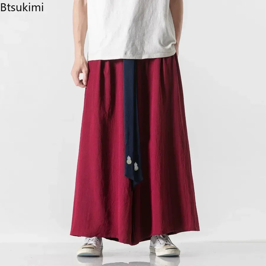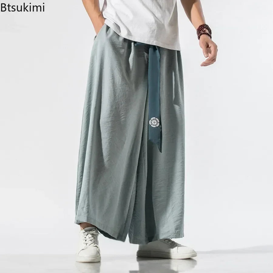 2025 Men Wide Leg Pants Men Cotton Linen Joggers Retro Loose Casual Trousers Fashion Man New Chinese Style Linen Tang Suit Pants