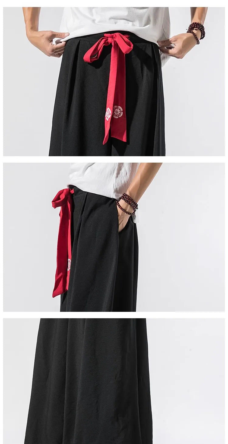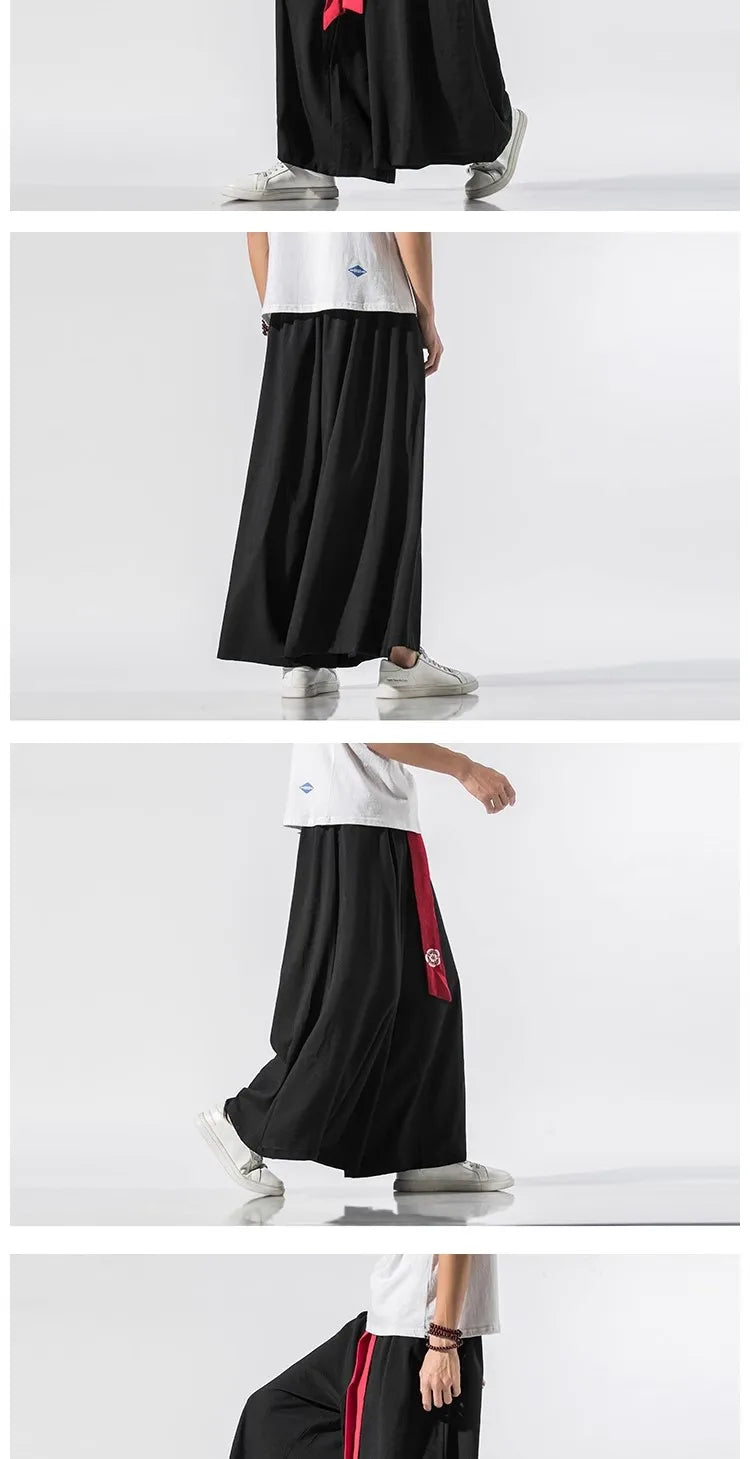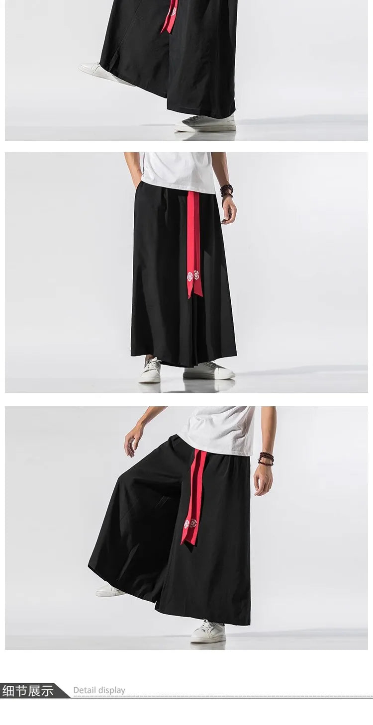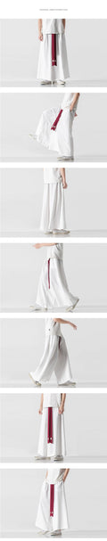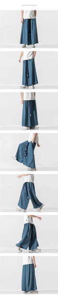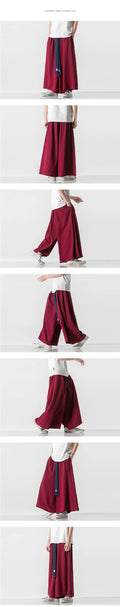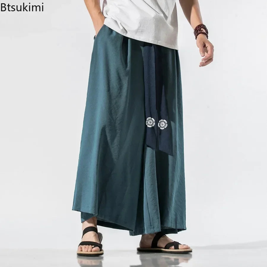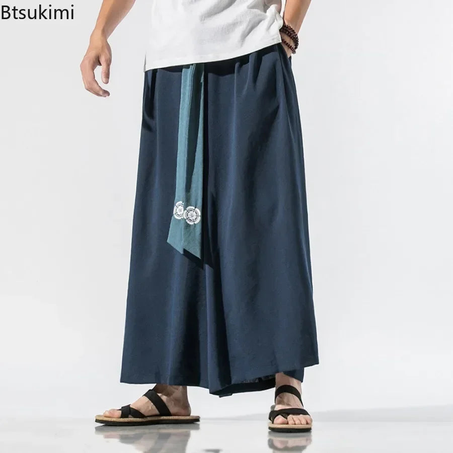 2025 Men Wide Leg Pants Men Cotton Linen Joggers Retro Loose Casual Trousers Fashion Man New Chinese Style Linen Tang Suit Pants