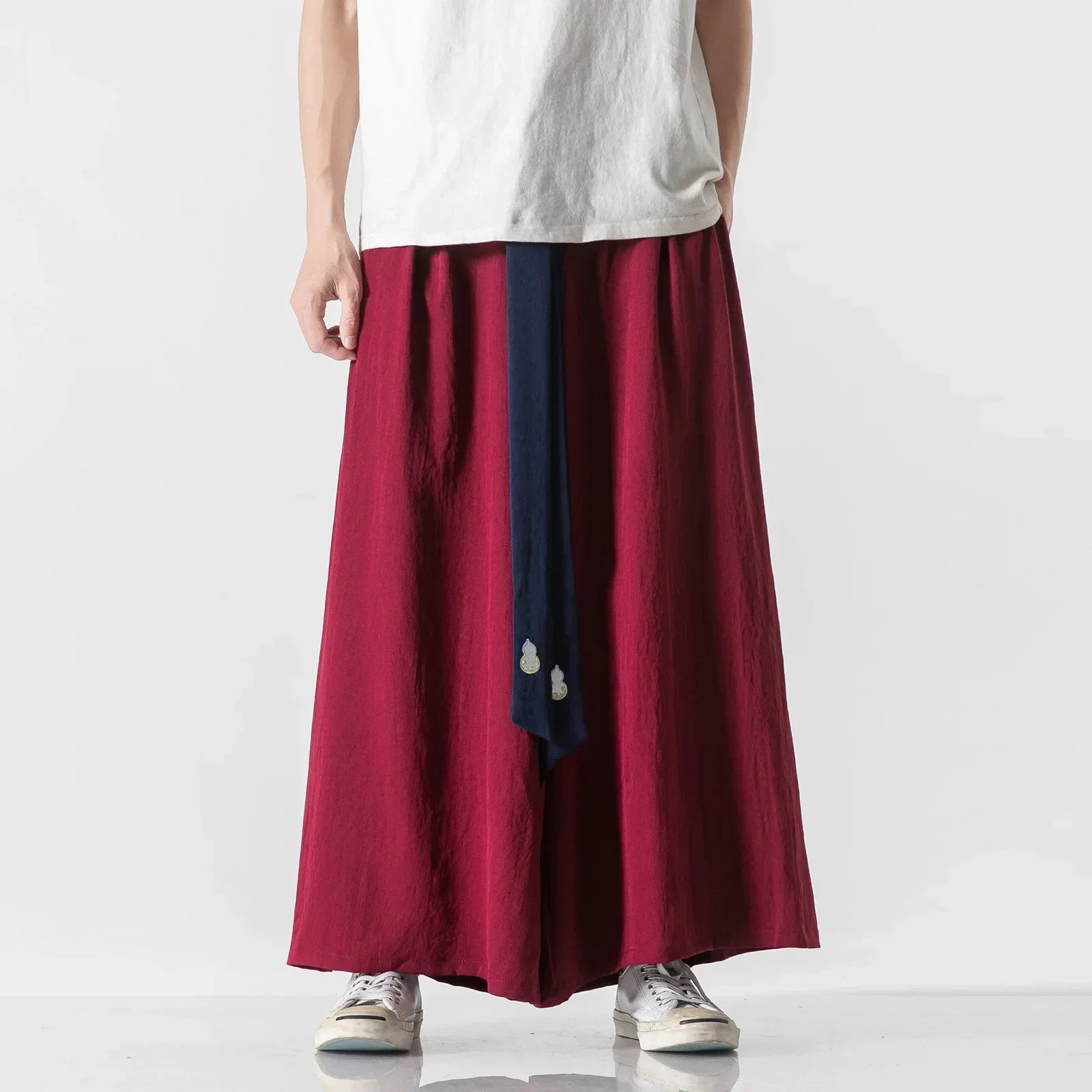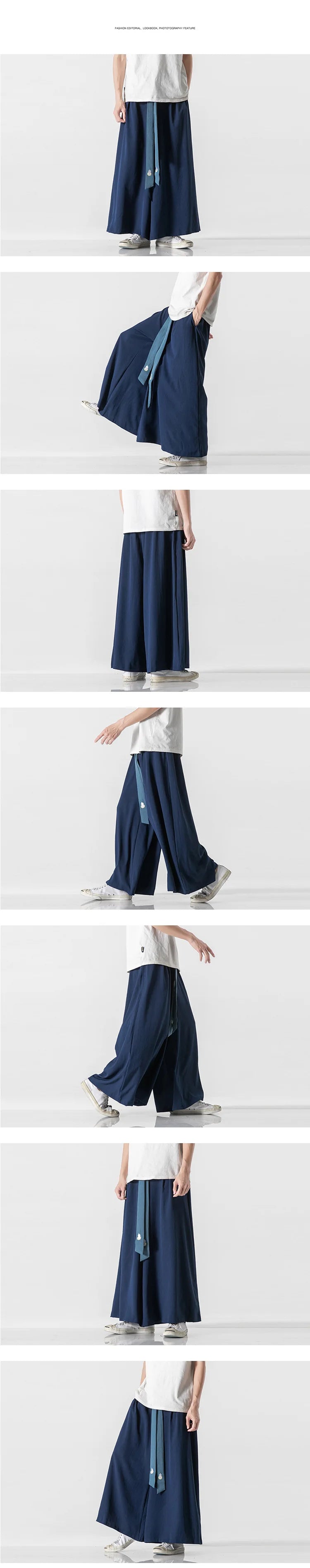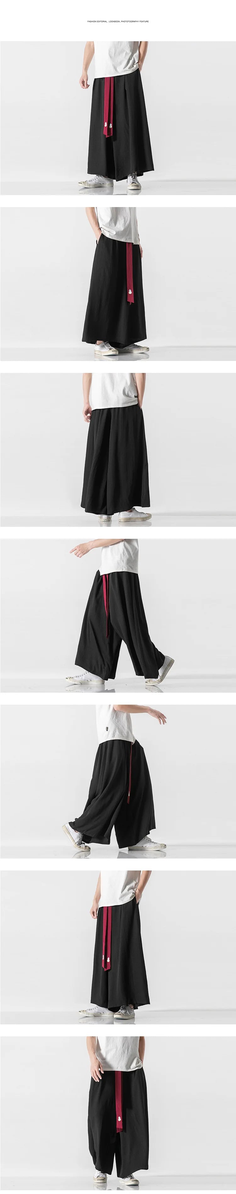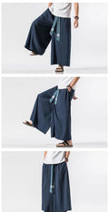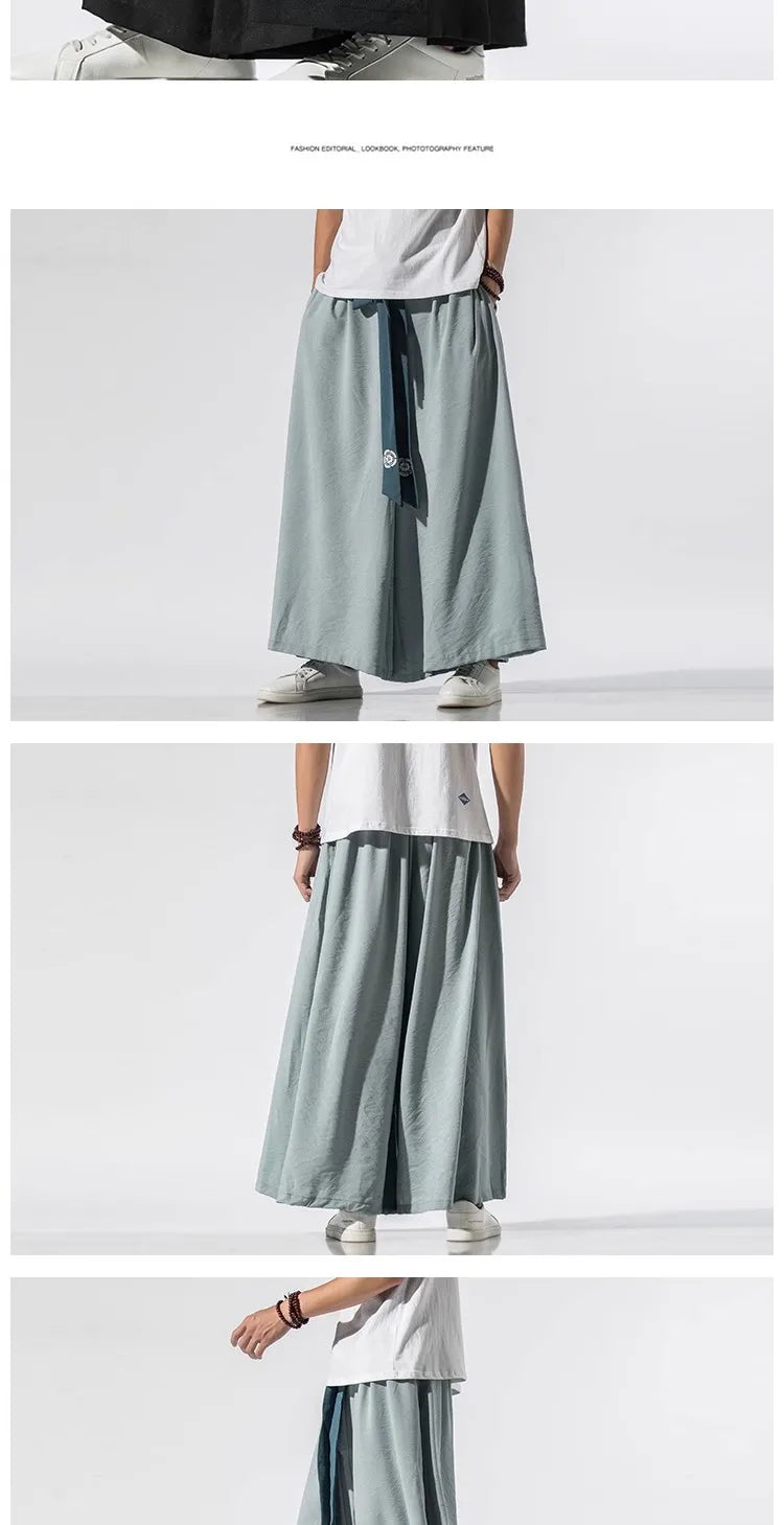 2025 Men Wide Leg Pants Men Cotton Linen Joggers Retro Loose Casual Trousers Fashion Man New Chinese Style Linen Tang Suit Pants