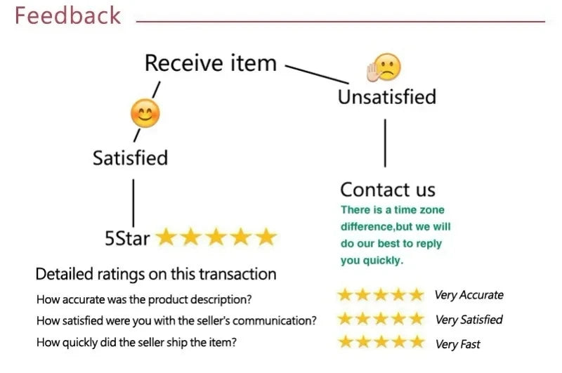 If you are satisfied with the product you get, please leave a positive feedback, 5 stars is most welcomed.