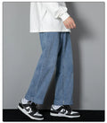 2025 New Korean Men's Casual Long Jeans Classic Man Straight Denim Wide-leg Pants Solid Color Light Blue Grey Black