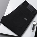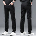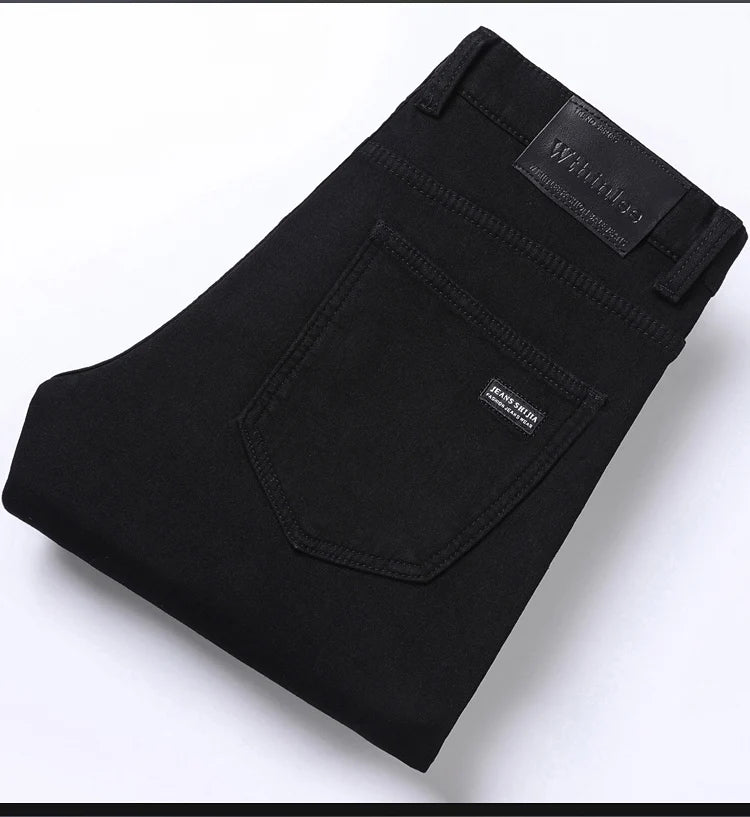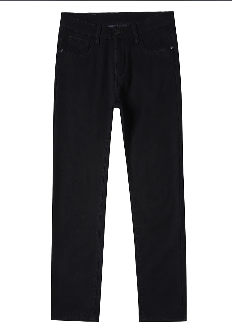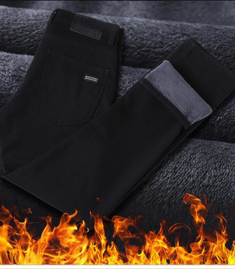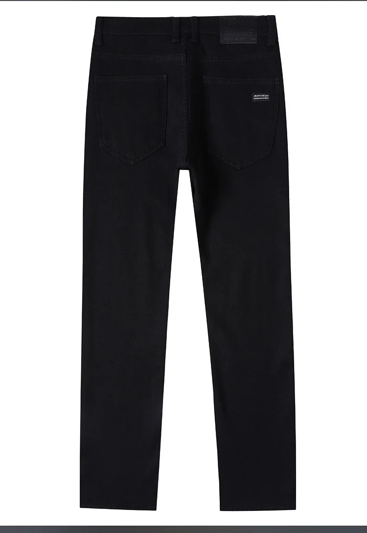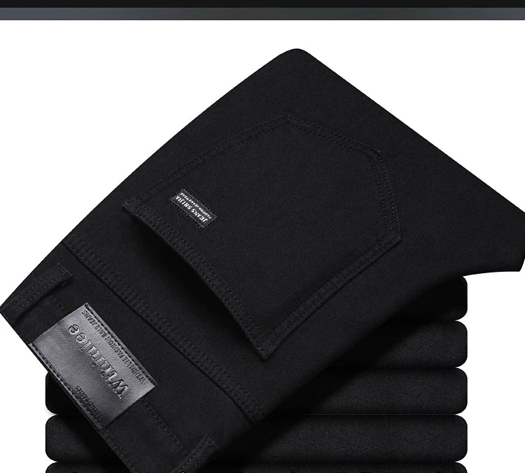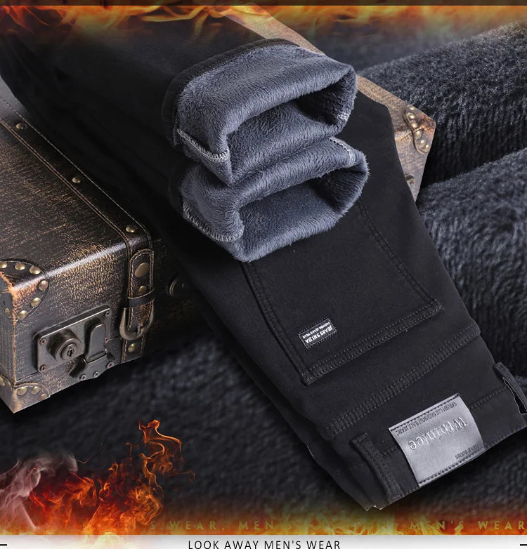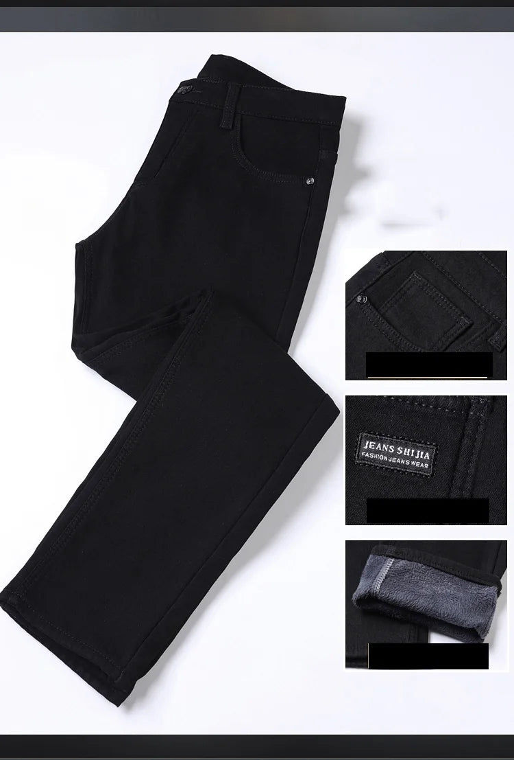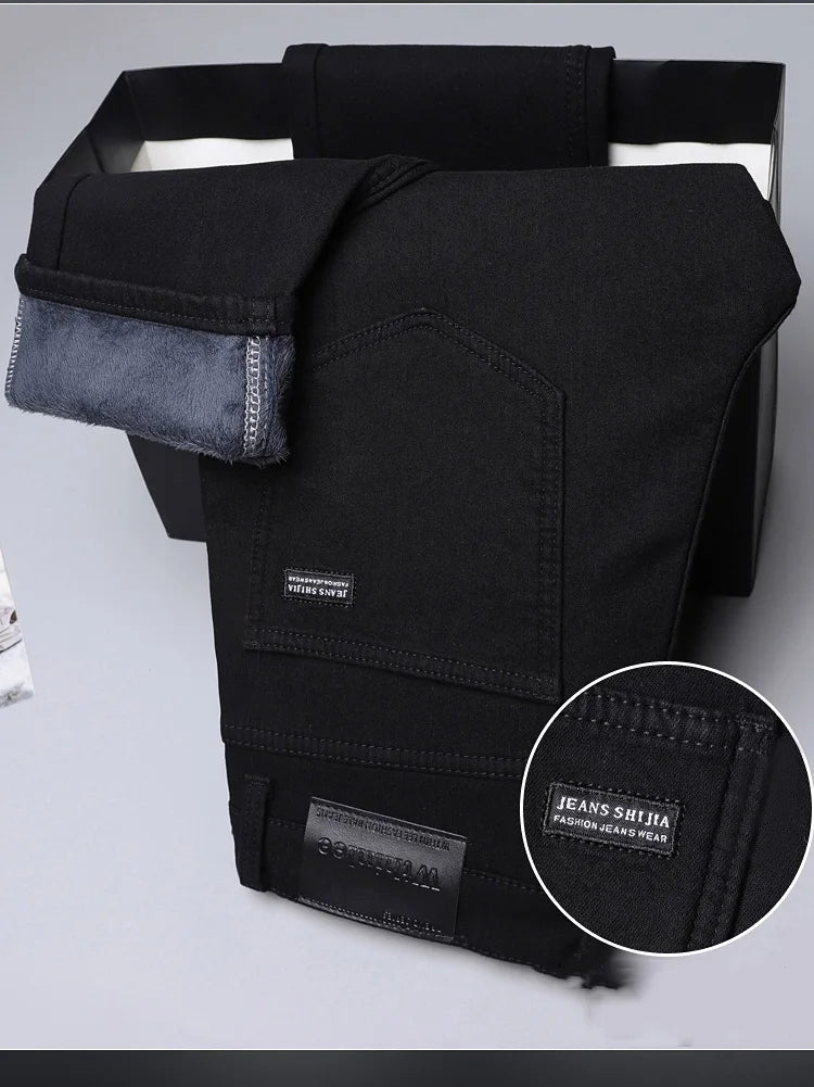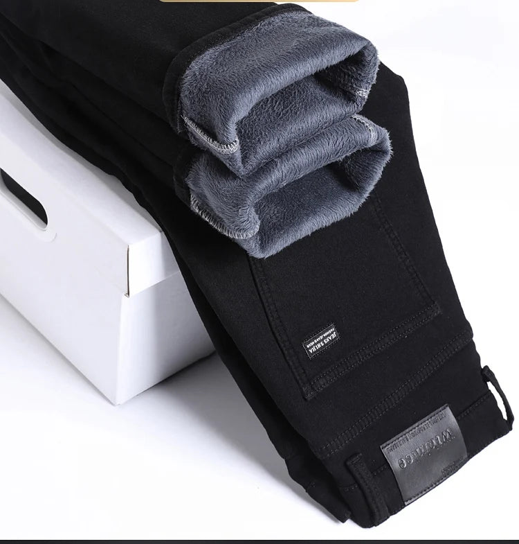 2025 New Winter Pure Black Fleece Thick Warm Jeans Men's loose Straight Elastic Denim Pants classics Casual Plush Trousers