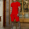 2025 Summer 2PCS Tracksuit for Men Short Sleeve T-Shirt+Shorts 2 Piece Set Sports Suit Men Solid Gyms Fitness Sportswear Sets