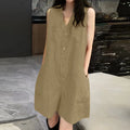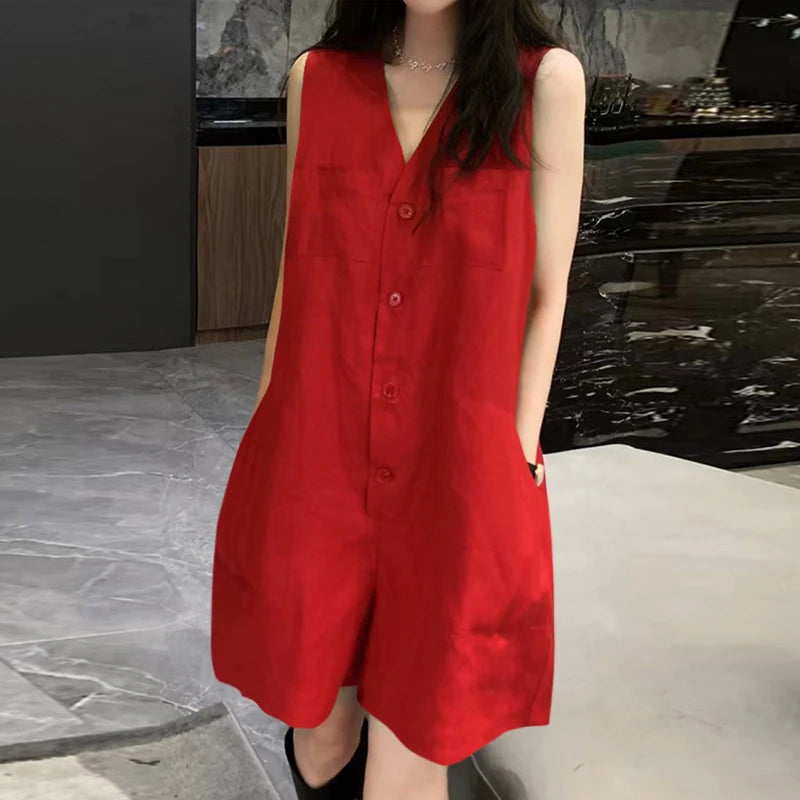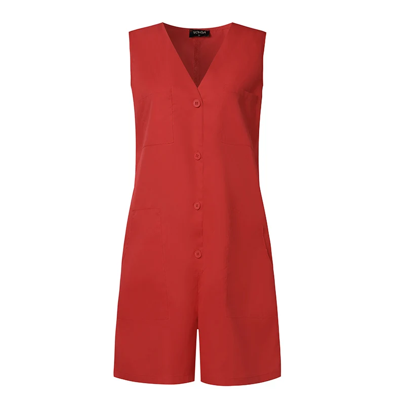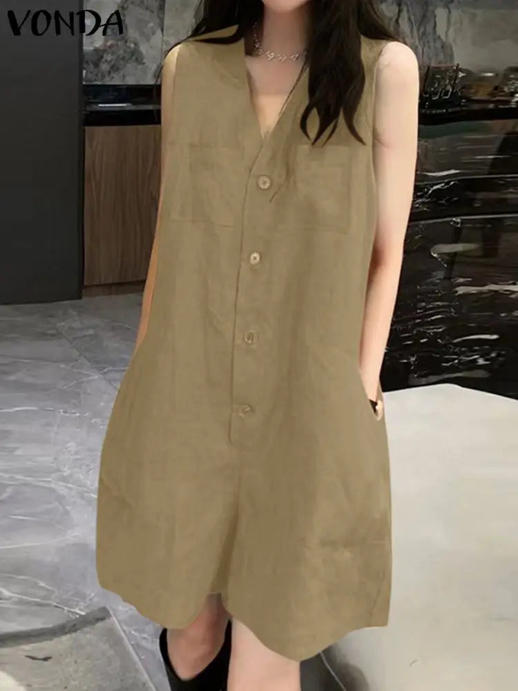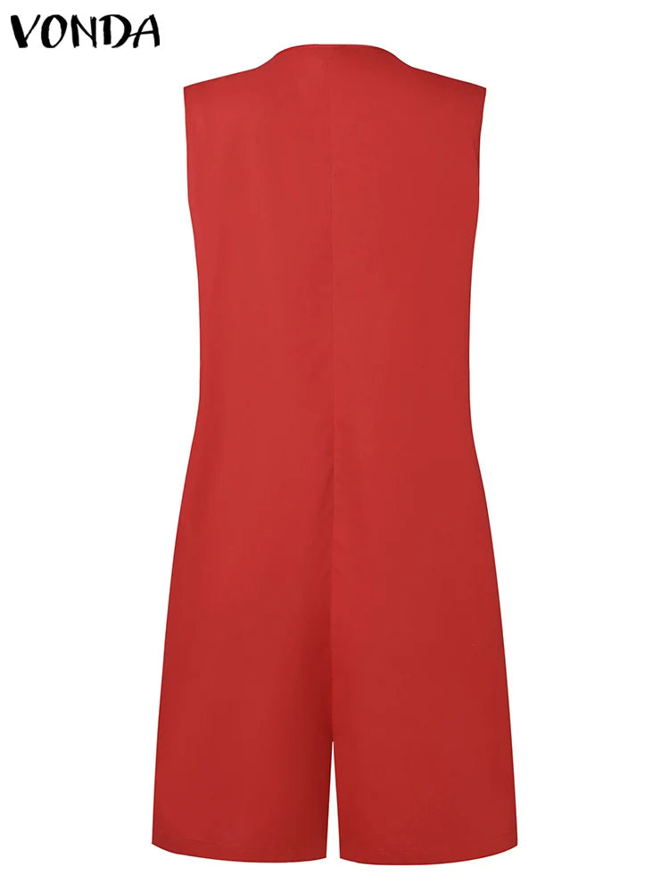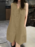 2025 VONDA Women Summer Short Jumpsuits Sexy Sleeveless Rompers Casual Loose Fashion V Neck Pockets Solid Playsuits Overalls