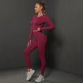 2Pcs Women Sets Energy Seamless Gym Suits Bubble Butt Sports Pants+Long Sleeve Shirts Push Up Running Sets Tracksuits Tights Set
