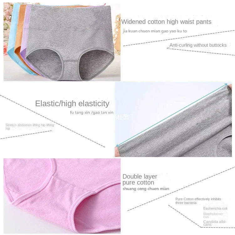 4 Pack Sexy New Women's Underwear Comfort Soft Women's Cotton Briefs Cozy High Waist Fashion Lingerie Breathable Fitness Sports