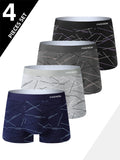 4pcs men's underwear, comfortable, soft and fashionable daily line print intimate boxer briefs, sporty and breathable boxers