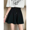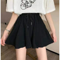 5 Sizes Summer Shorts Skirts Women Elastic High Waist Casual Wide Leg Shorts Korean A Line Loose Mini Skirt Black Short Pants