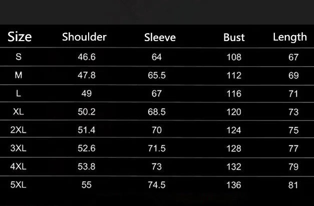 Size: S M L XL 2XL 3XL 4XL 5XL