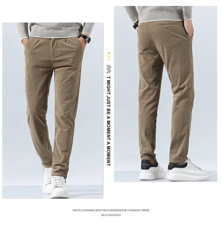Autumn and Winter Men's Corduroy Trousers New Men's Clothing Stretch Slim Fit Casual Pants Fashion Mens Business Work Pants