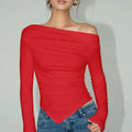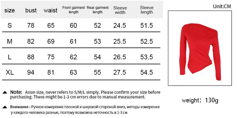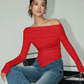 Autumn New T-shirt Red Sexy Women Top Off Shoulder Slim Tees Long Sleeves Streetwear Pullover Asymmetrical Lady Knitted T-shirt