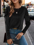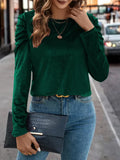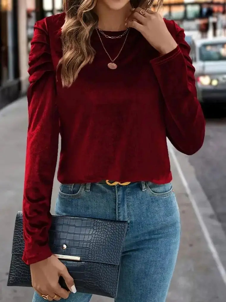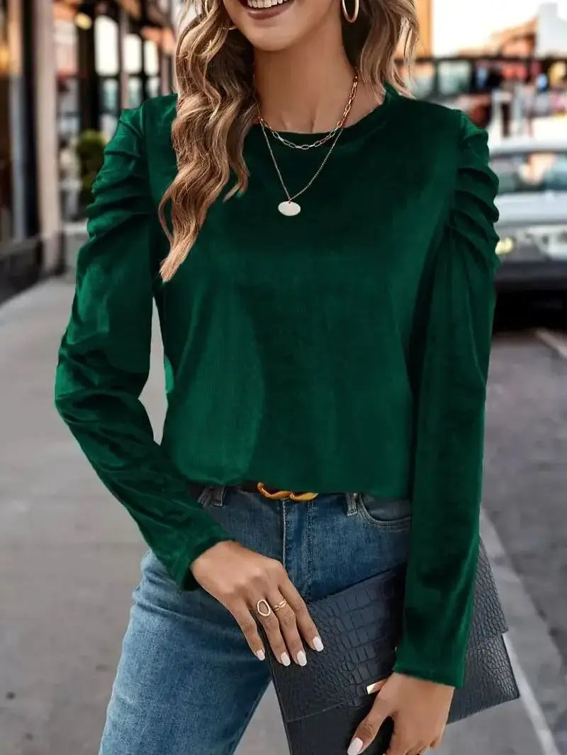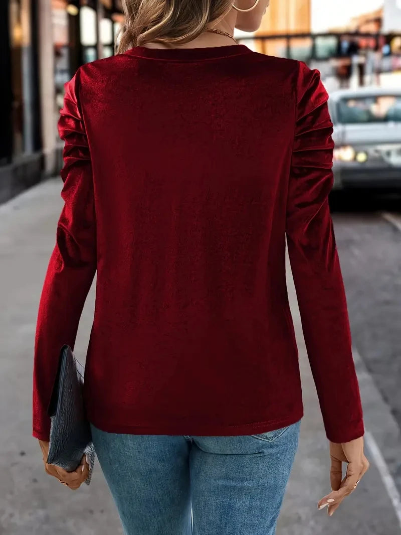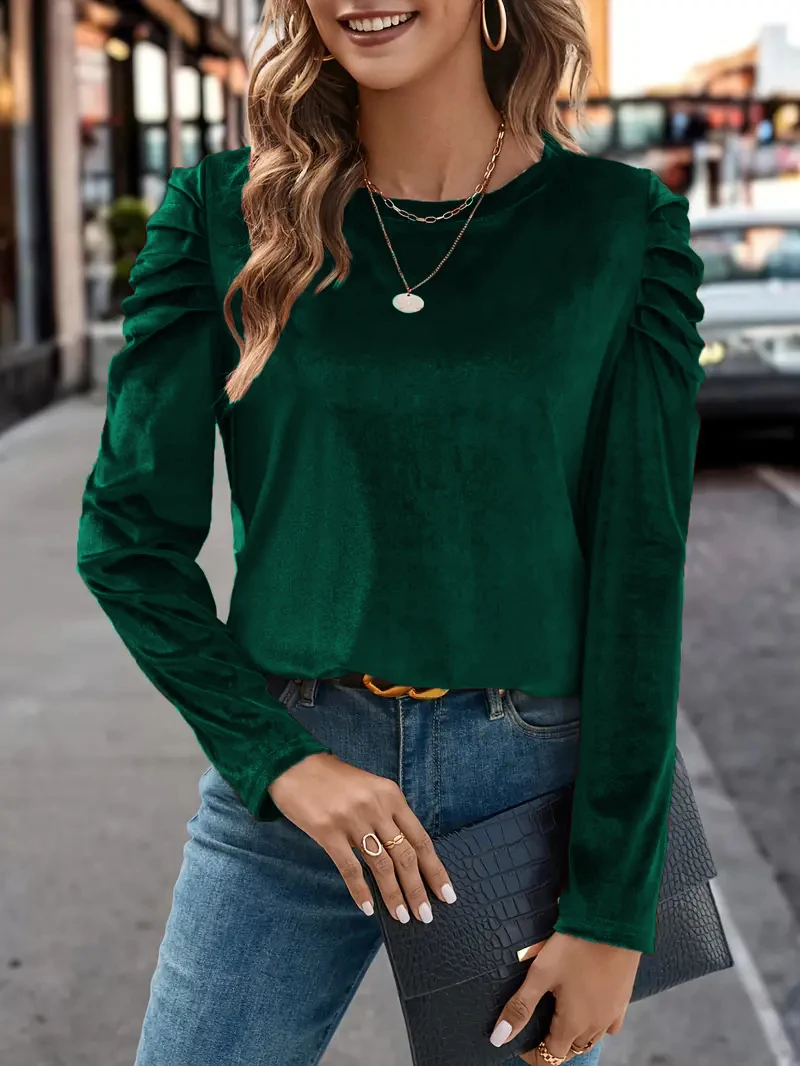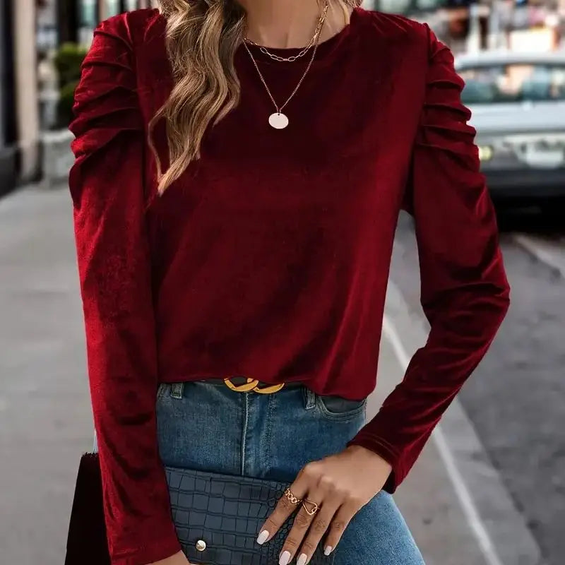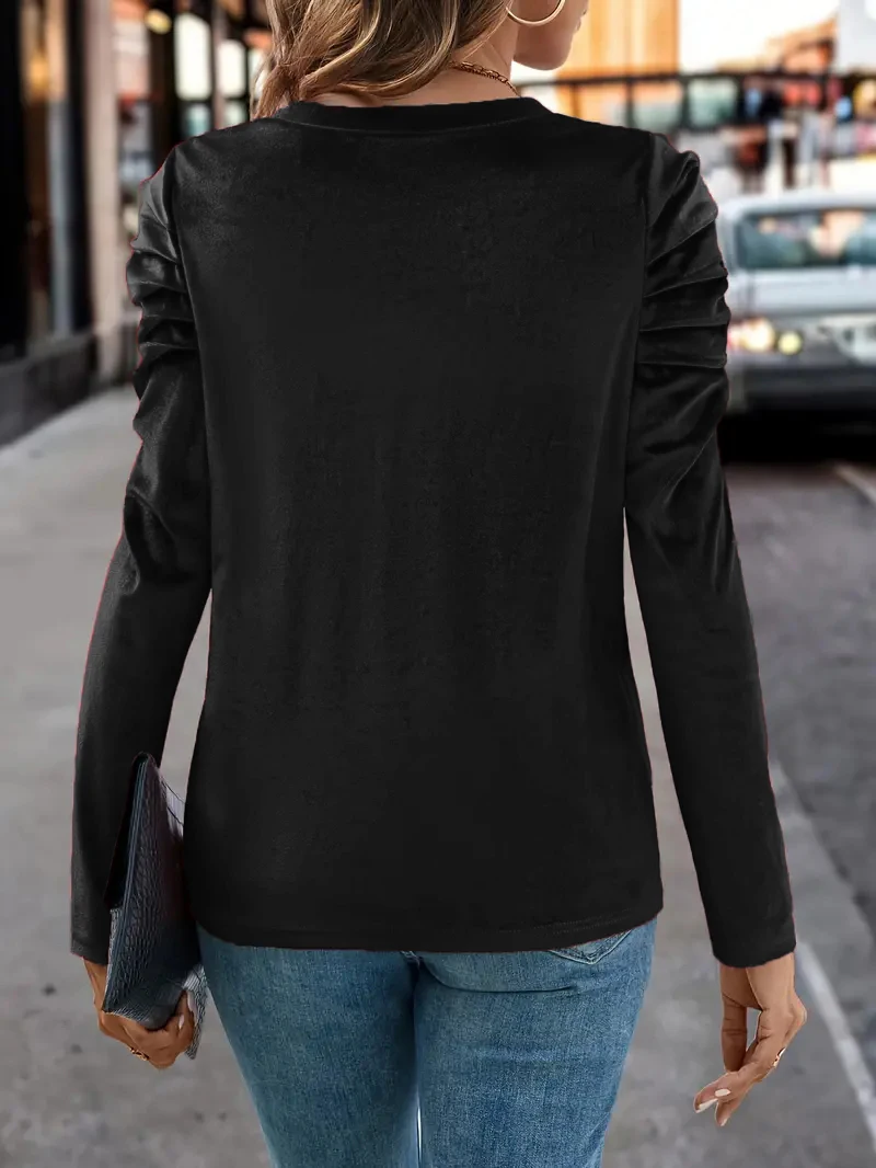 Autumn New Women's Round Neck Puff Long Sleeve Velvet Fashion Top T-shirt