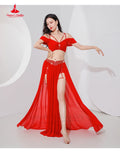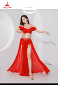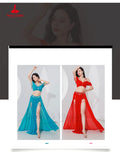 Belly Dance Professional Suit for Women Mesh Short Sleeves Top+sexy Split Long Skirt 2pcs Girl's Oriental Belly Dancing Suit