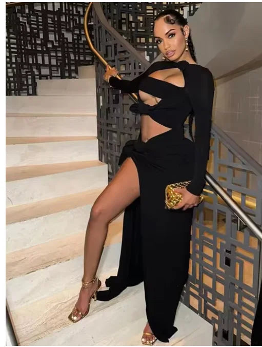 Black Luxury Evening Dresses for Women 2025 Brithday Prom Gown Sexy Hollow Out Women's Dress Fashion New Elegant Party Robe