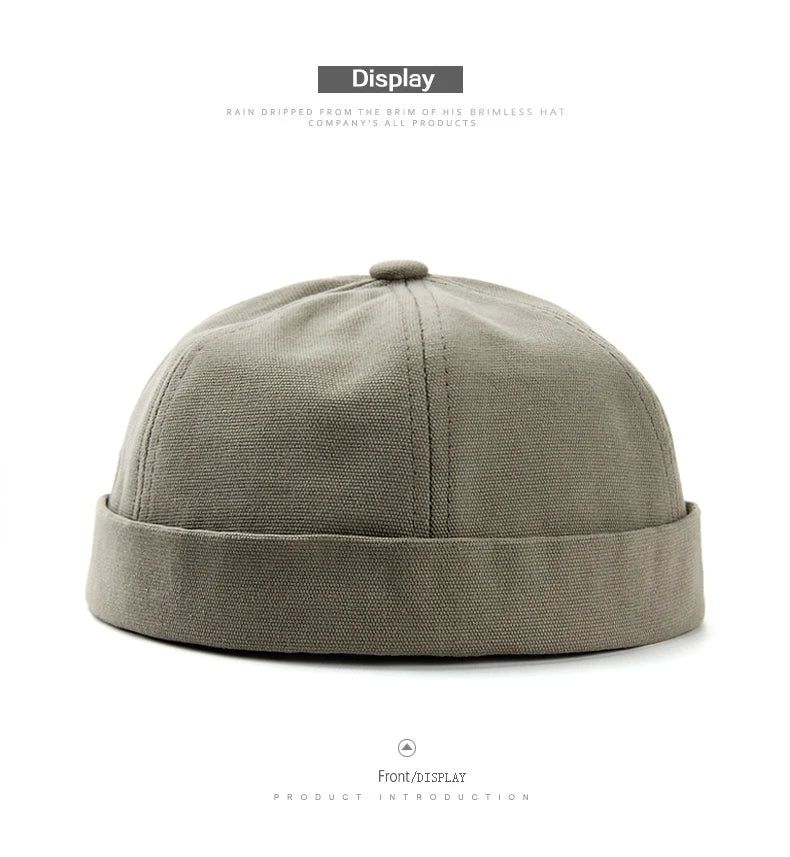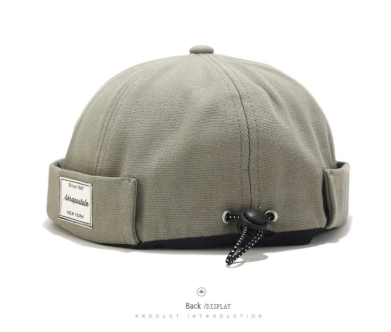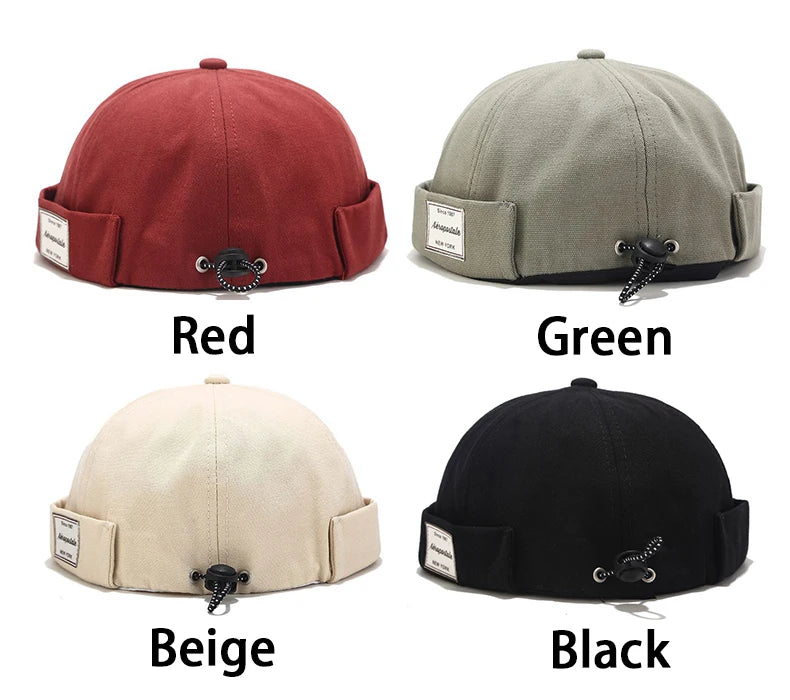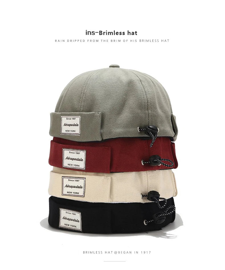 Bocca Label Docker Cap Adjustable Solid Color Brimless Caps Without Visor Cotton Breathable Beanie Hats Unisex Street Outdoor