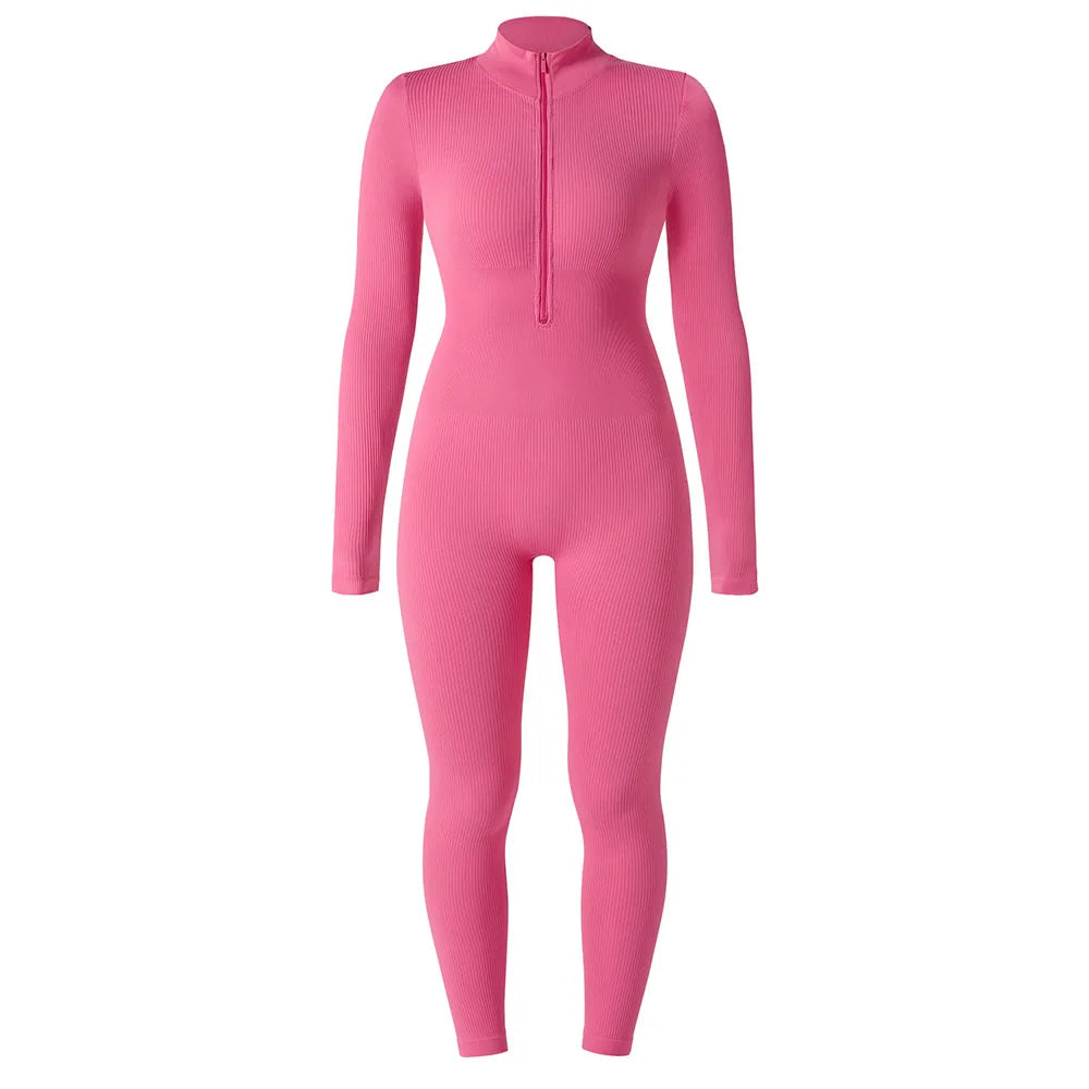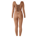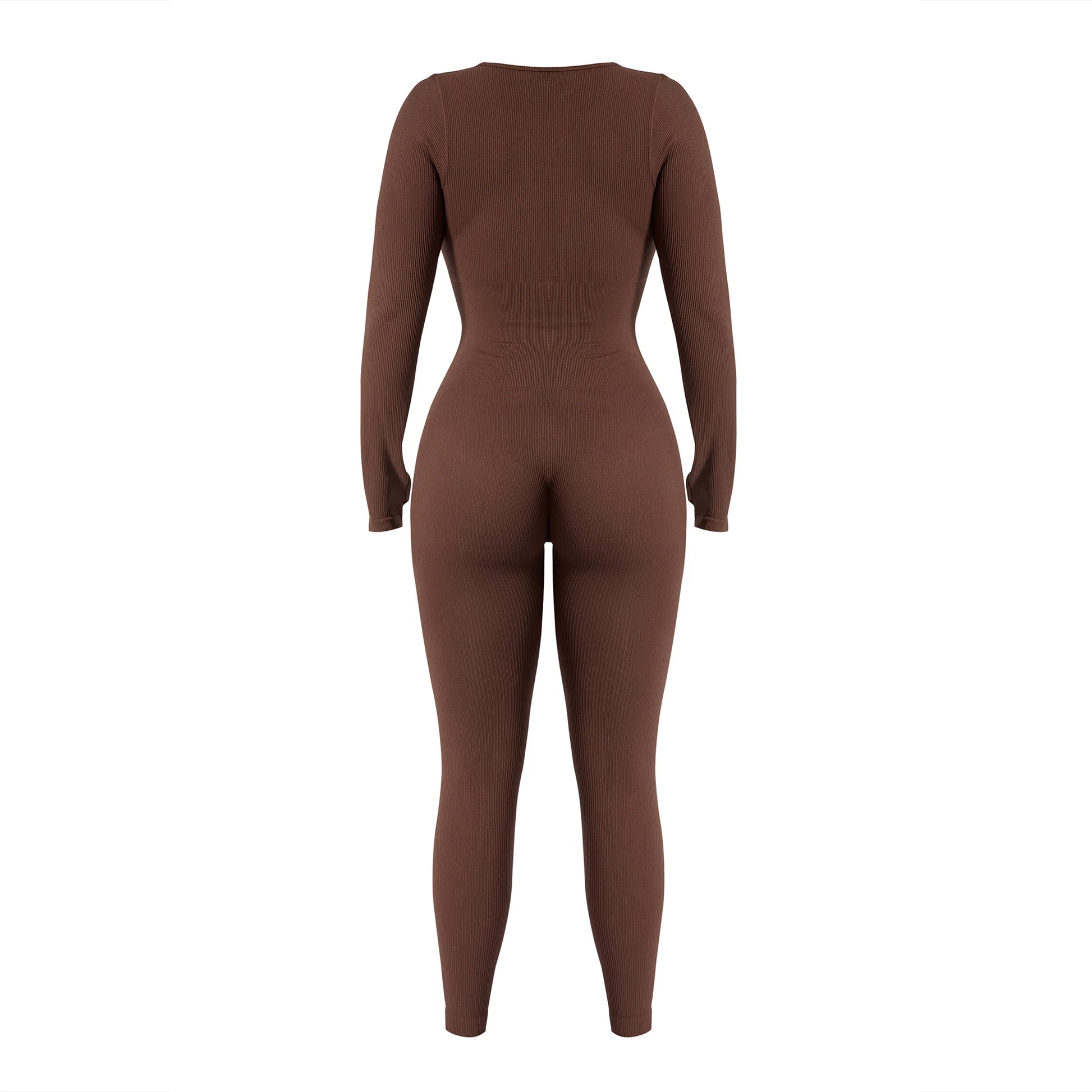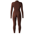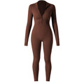 Bodycon Slim Jumpsuit For Women‘s Clothing Zipper Casual Brown Fitness Rompers Autumn 2024 Playsuit Activity Streetwear Overall