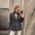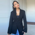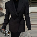 Casual Solid Women Blazer Urban Lapel Long Sleeve Button Pocket Female Streetwear 2025 Spring Autumn Elegant Lady Outwear
