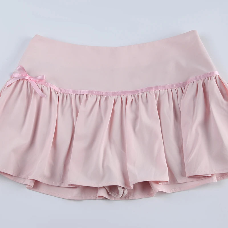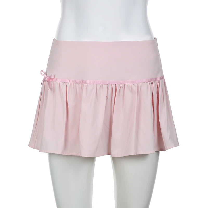 CIBBAR Y2k Fairycore Folds A-line Pleated Mini Skirt Pink Sweet Coquette Aesthetic Low Rise Super-short Skirts Ladies Cute 2000s
